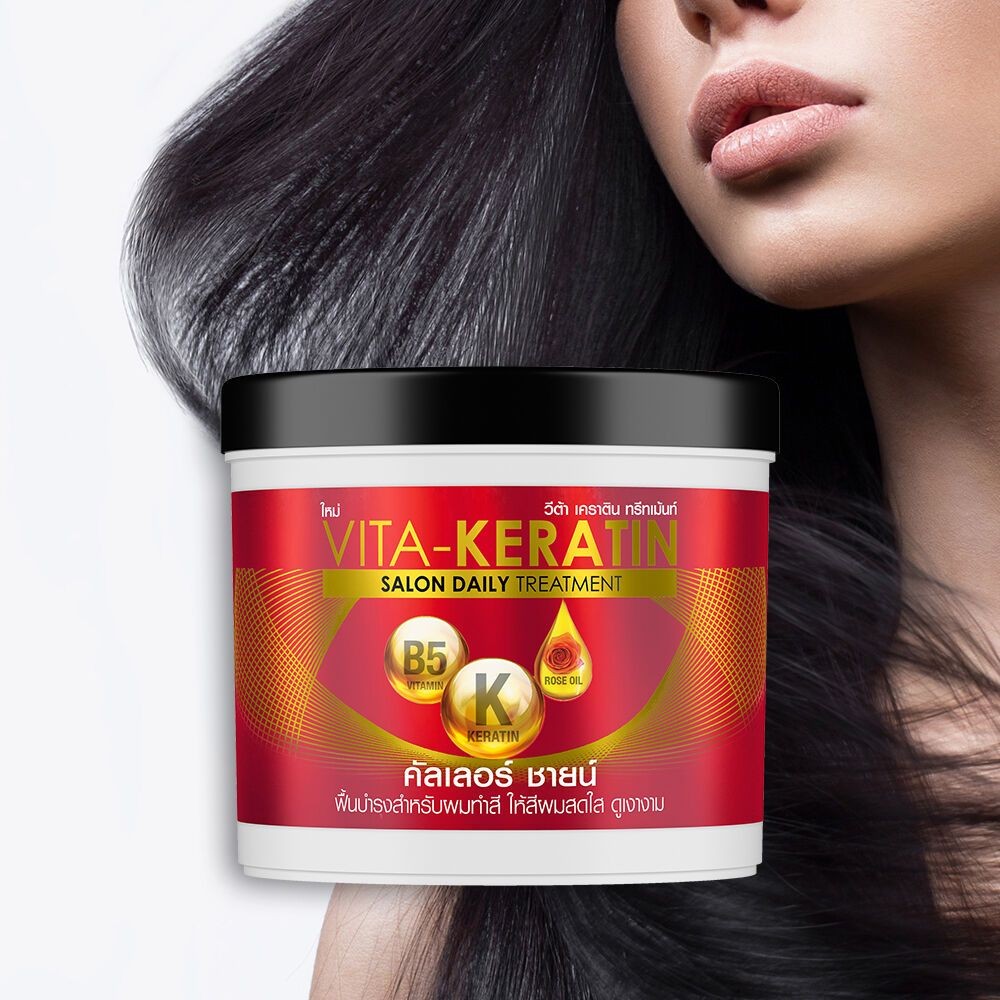❤️ปลอมคืนเงิน❤️Vita Keratin Treatment Salon Daily Color Shine 600ml.ทรีทเมนท์บำรุงผม