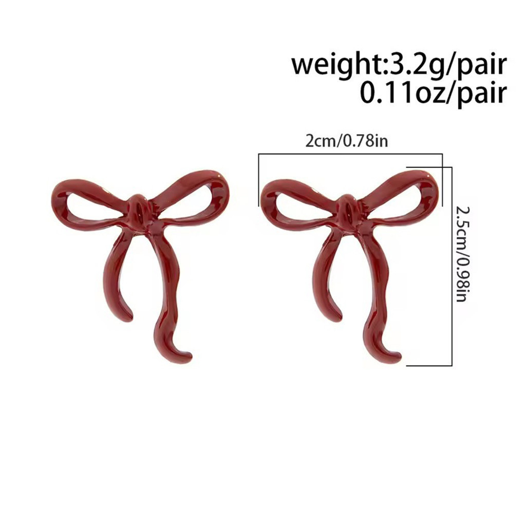 ต่างหูโบว์สีแดงย้อนยุคสําหรับผู้หญิงต่างหูเรียบง่ายโบว์ริบบิ้นต่างหูหรูหรา