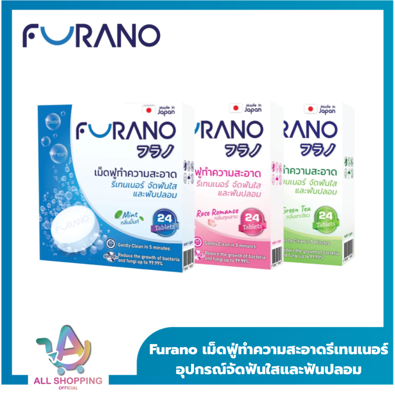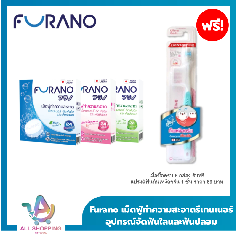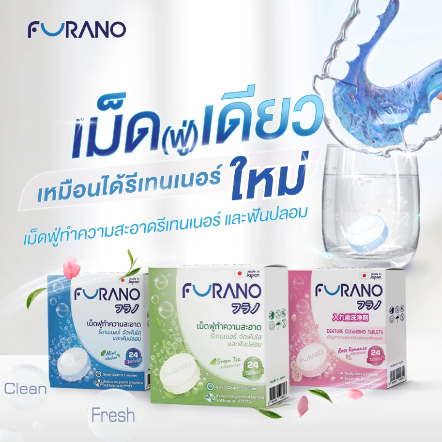 (แพค 3) Furano เม็ดฟู่ทำความสะอาดรีเทนเนอร์ และฟันปลอม 3 กล่องซื้อครบ 6 กล่องแถมฟรีแปรงสีฟันกันเหงือกร่น 1 ชิ้น