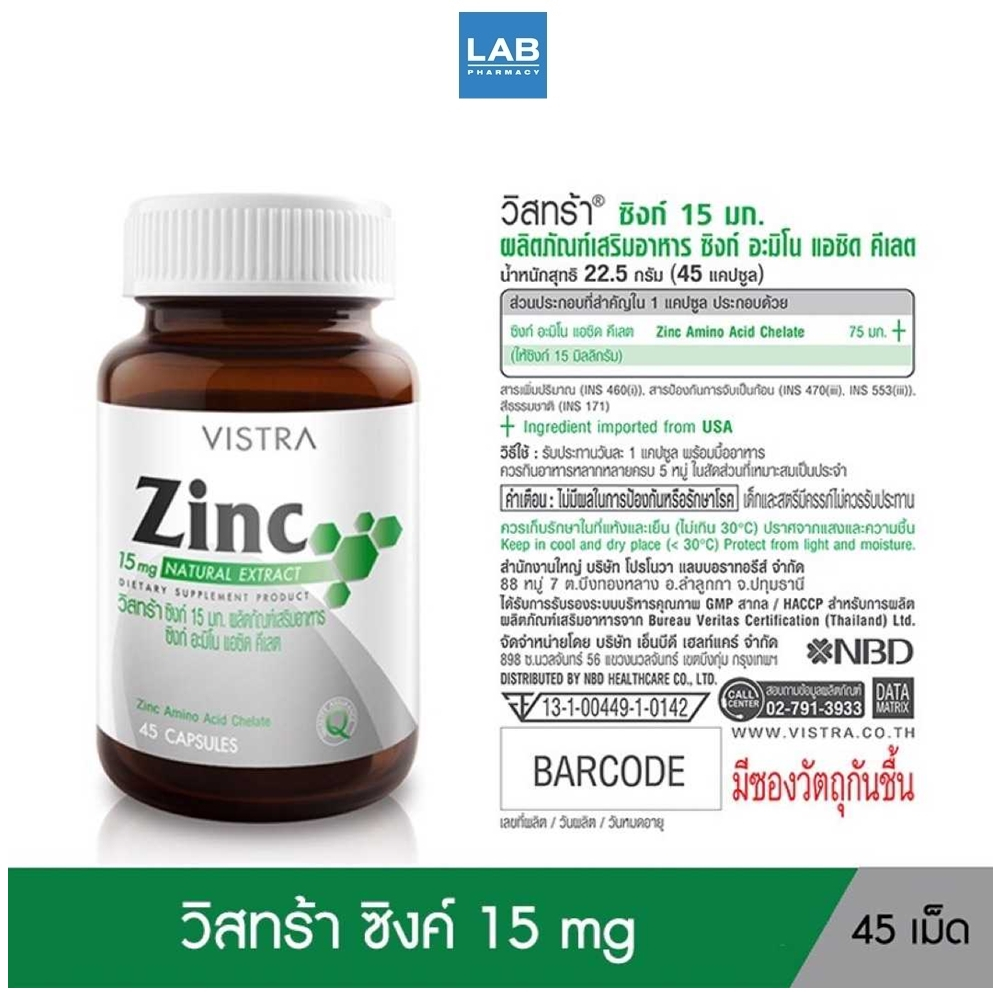 Vistra Zinc 45s - วิสทร้า ผลิตภัณฑ์เสริมแร่ธาตุสังกะสี 1 ขวด