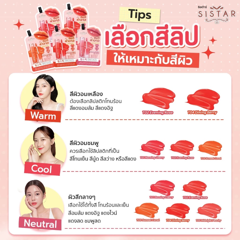 (กล่อง 6 ซอง) Sistar ลิปทินท์ ฉ่ำวาว ซิสต้าร์ กลอสซี่ ฟิกซ์ มี 2 เฉดสี (ปริมาณ 2 กรัม)