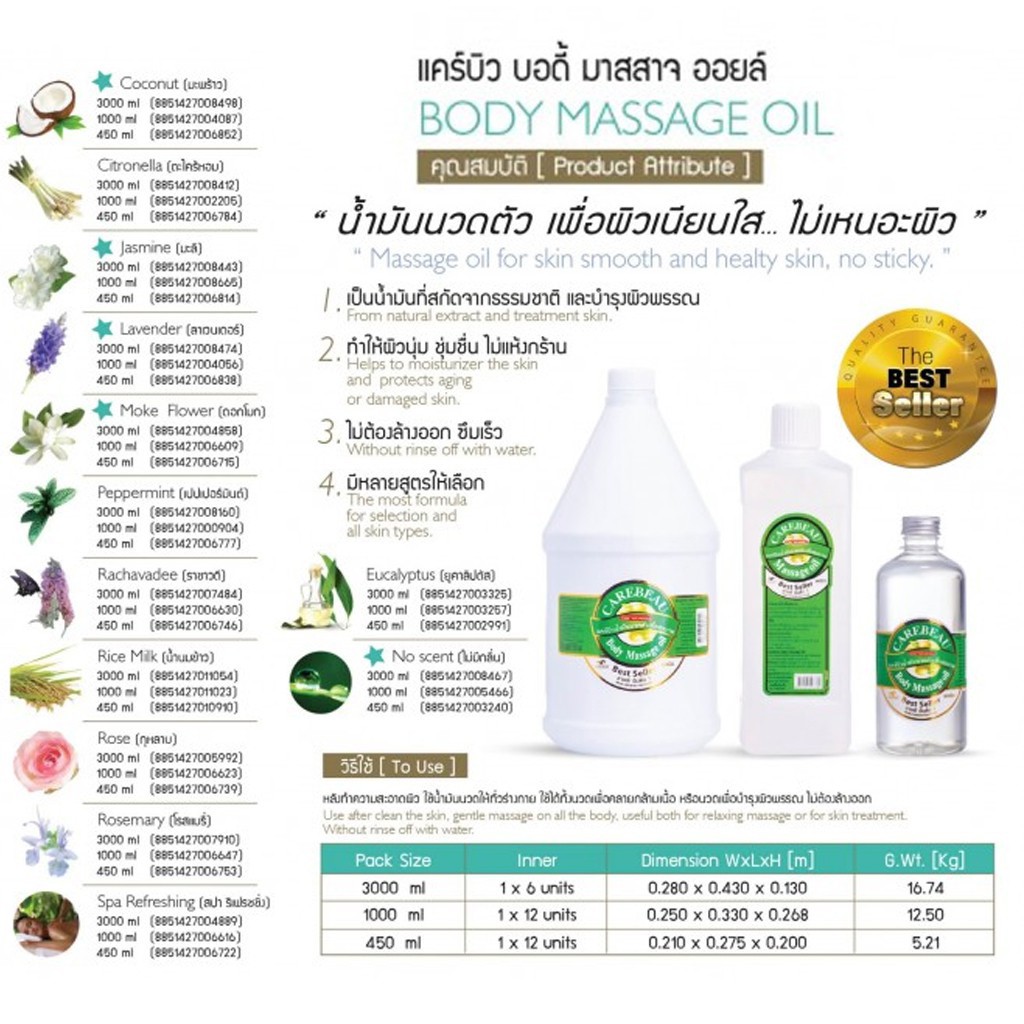 แคร์บิว น้ำมันนวดตัว นวดสปา สมุนไพร Carebeau Body Massage Oil 1000 ml.