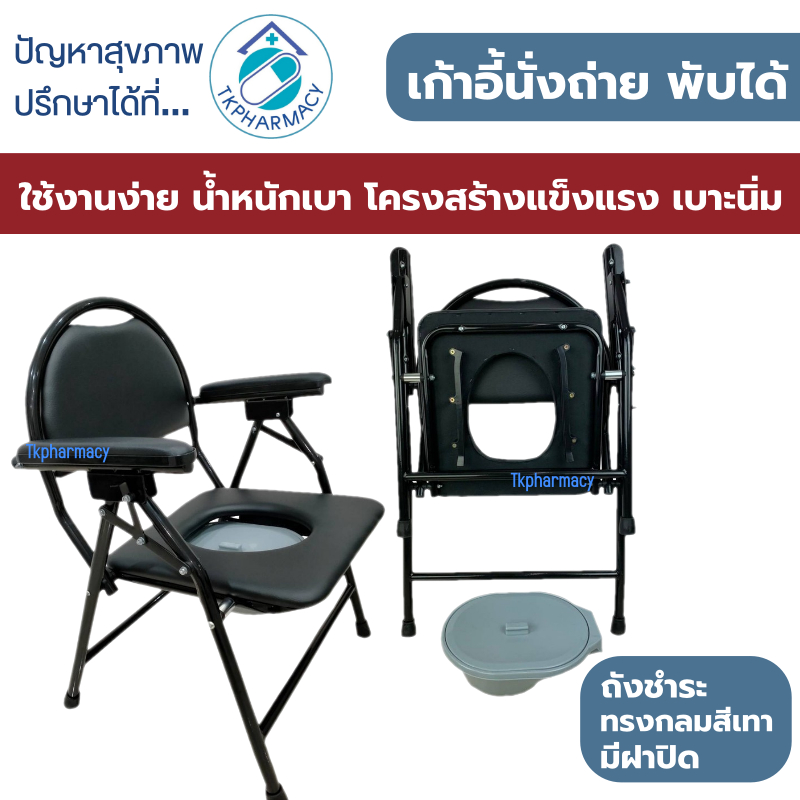 เก้าอี้นั่งถ่าย มีพนักพิง Steel Commode Chair ***สีดำ***