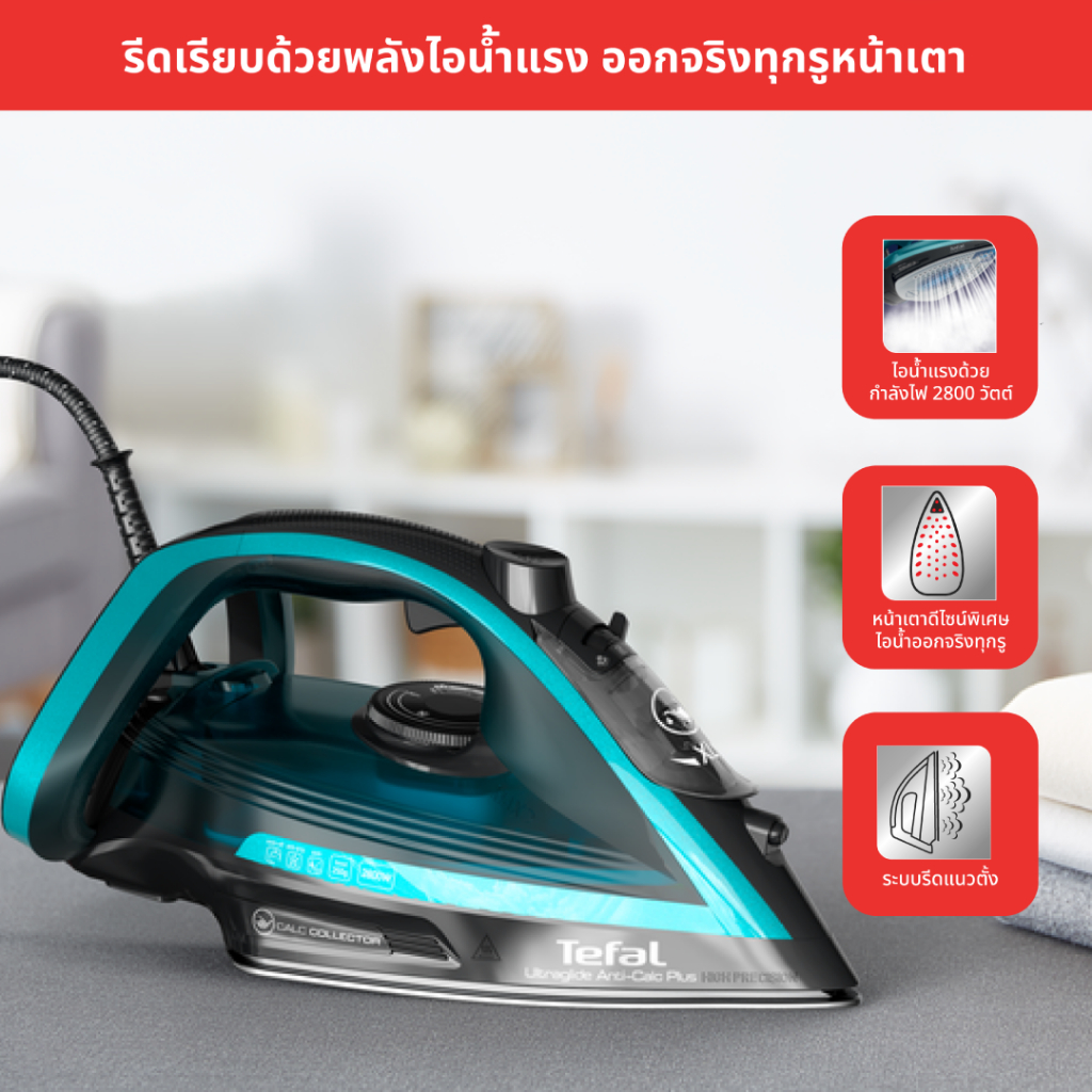 Tefal เตารีดไอน้ำ Ultraglide Plus Steam Iron รุ่น FV5847T0 กำลังไฟ 2800 วัตต์