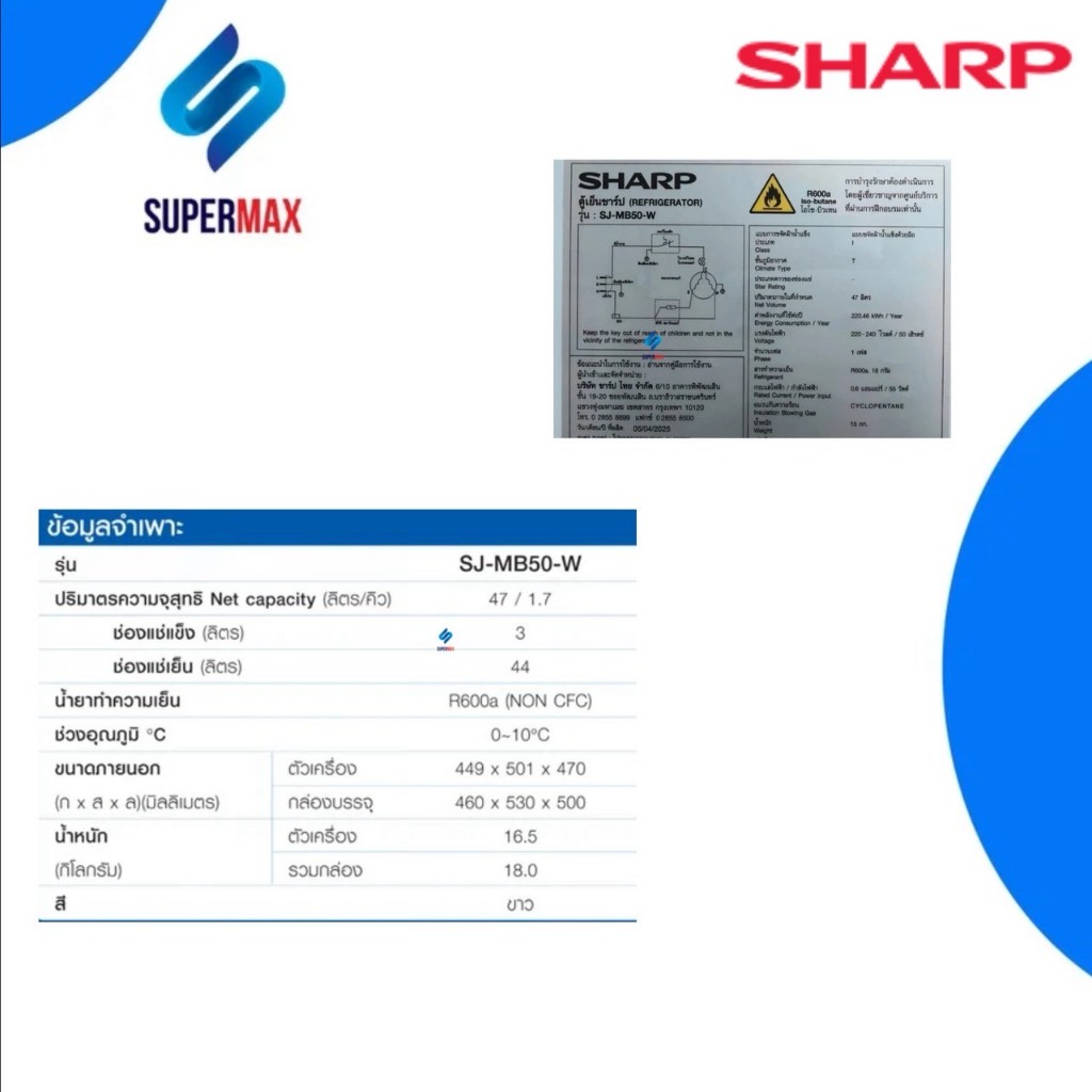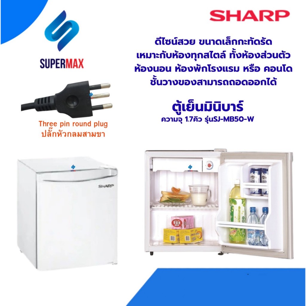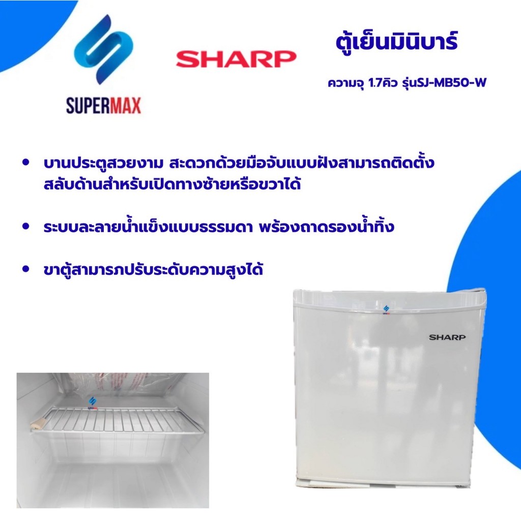 SHARP ตู้เย็นมินิบาร์ 1 ประตู SHARP SJ-MB50Wสีขาว ขนาด 1.7 คิว ประหยัดไฟ ขนาดกระทัดรัด รับประกันคอม 5 ปี