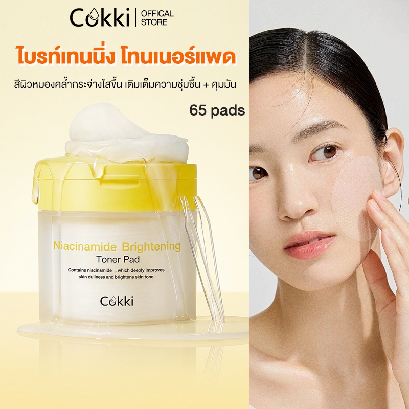 [ใหม่]Cokki ไนอาซินาไมด์ โทนเนอร์แพด ไบรท์เทนนิ่ง 65แผ่น | ช่วยปรับสีผิวให้ดูกระจ่างใสขึ้น Niacinamide Brightening Toner Pad
