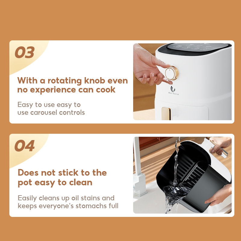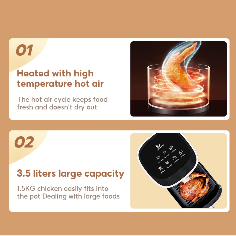 HAN RIVER Air Fryer 3.5L น้ํามันเคลือบไม่ติดฟรีไร้ควันมัลติฟังก์ชั่นทําอาหาร 800W วัตต์ต่ํา