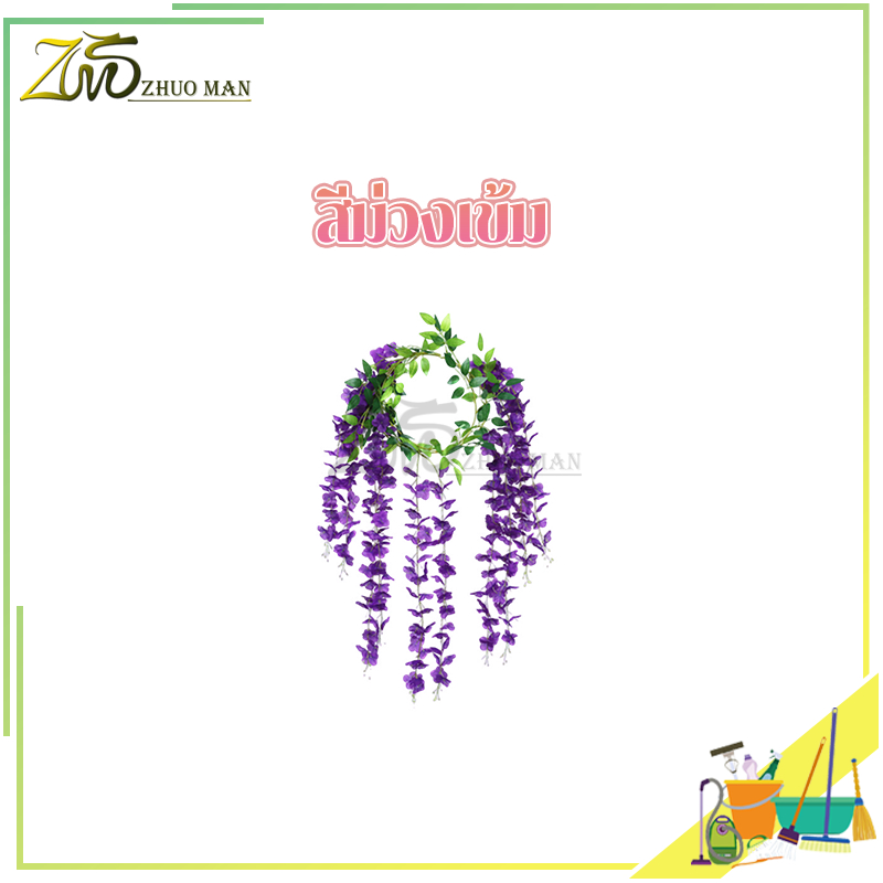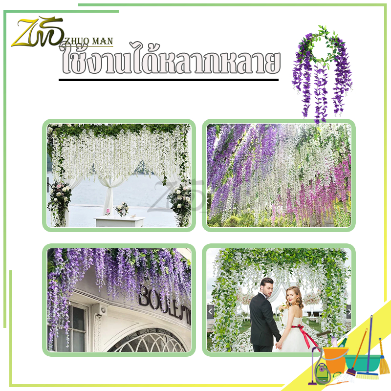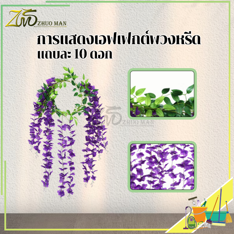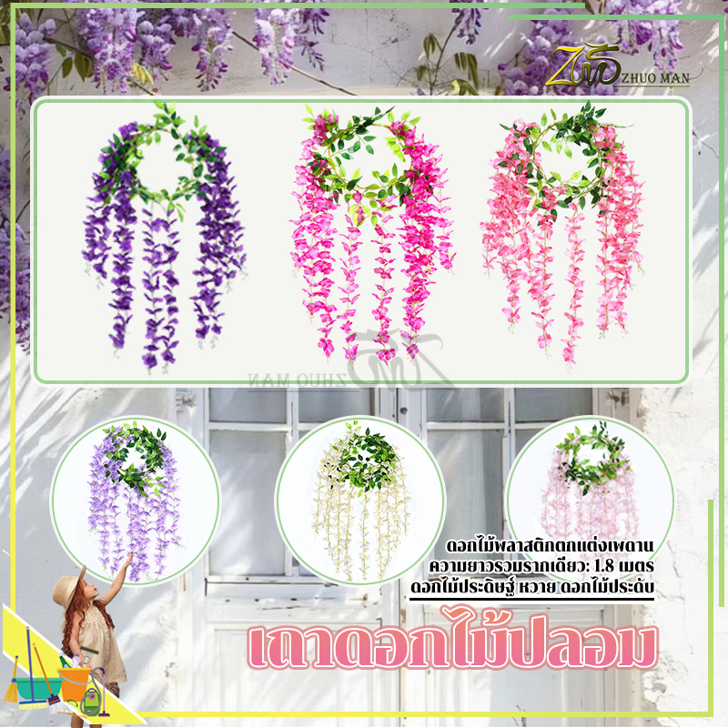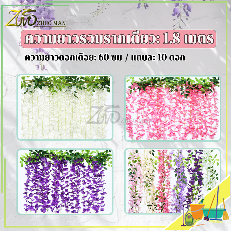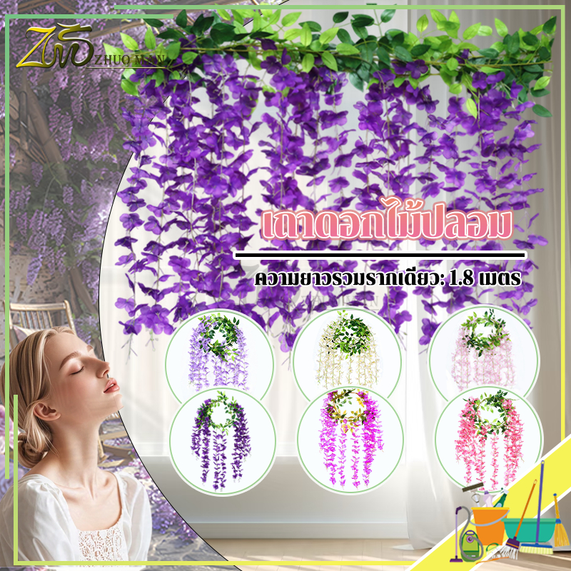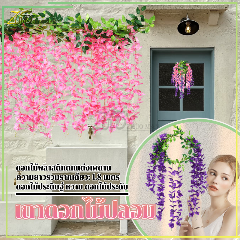 ดอกไม้ประดิษฐ์ เถาวัลย์ปลอม ดอกไม้จำลองวิสทีเรีย เถาวัลย์ดอกไม้ปลอม ยาว180cm สําหรับตกแต่งบ้าน งานแต่งงาน/สวน/ผนัง