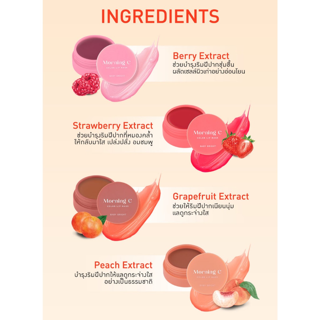 เบบี้ไบร์ท มอร์นิ่ง ซี ลิปมาร์คปาก พอกสีฉ่ำ 3.8g Baby Bright Morning C Color Lip Mask