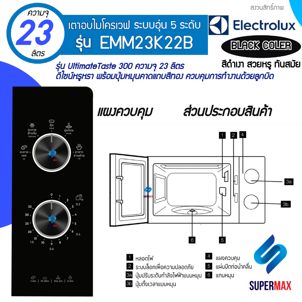 รุ่นใหม่ Electrolux รุ่น EMM23K22B ไมโครเวฟขนาดใหญ่ UltimateTaste 300ความจุถึง 23 ลิตร กำลังไฟ 800 วัตต์ รับประกันสิน