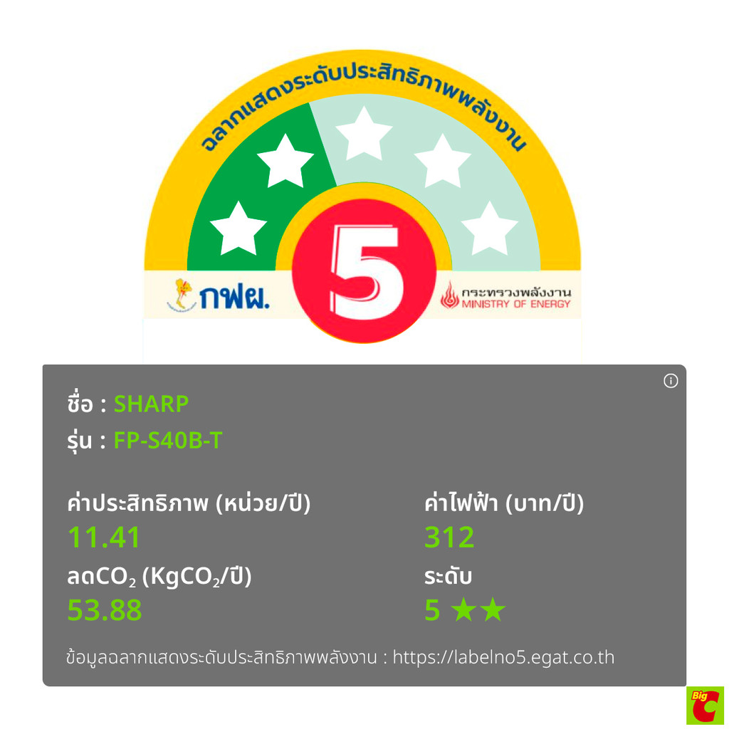 ชาร์ป เครื่องฟอกอากาศ รุ่น FP-S40B-T สีชาร์โคล