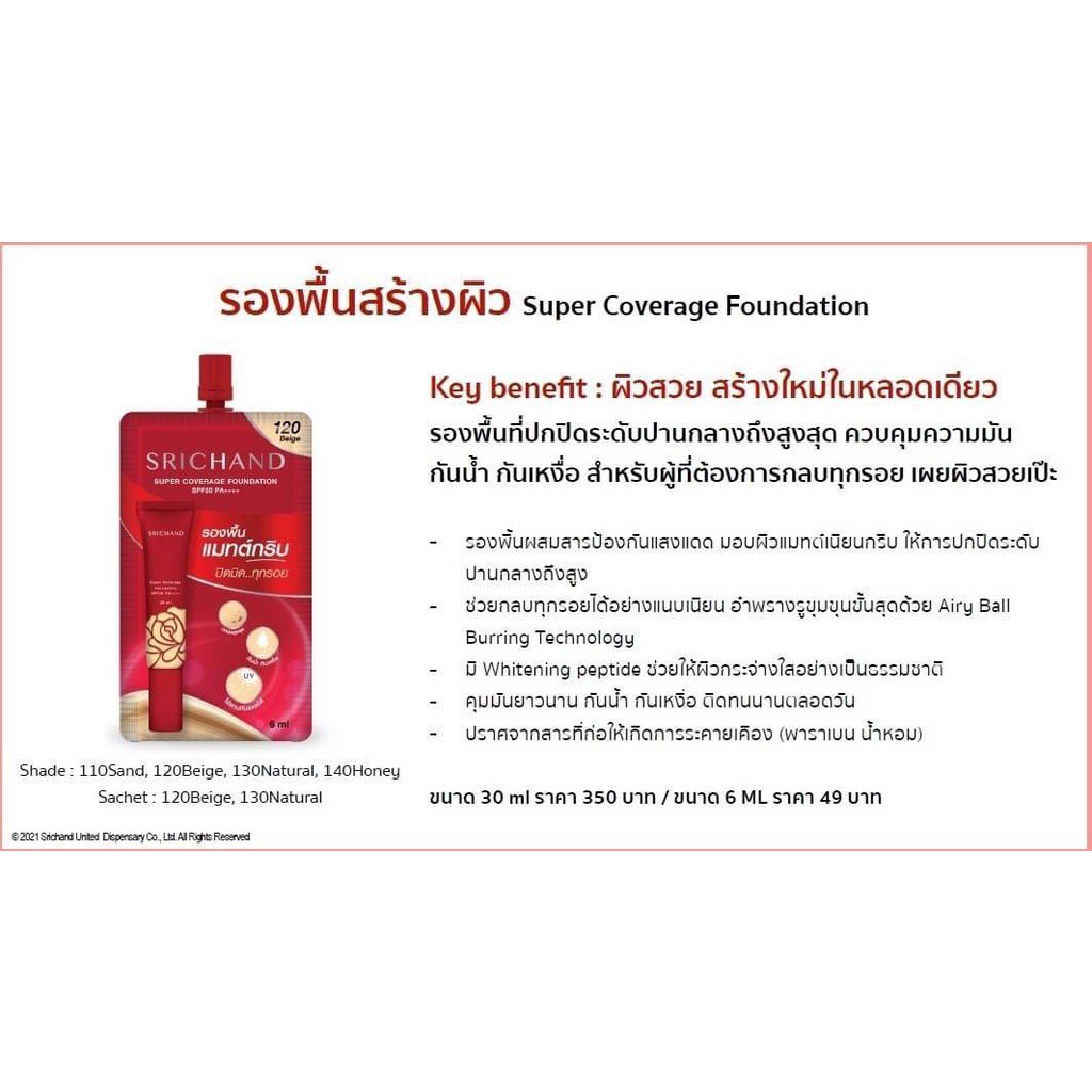 รองพื้น ศรีจันทร์ (ซองแดง) SRICHAND Super Coverage