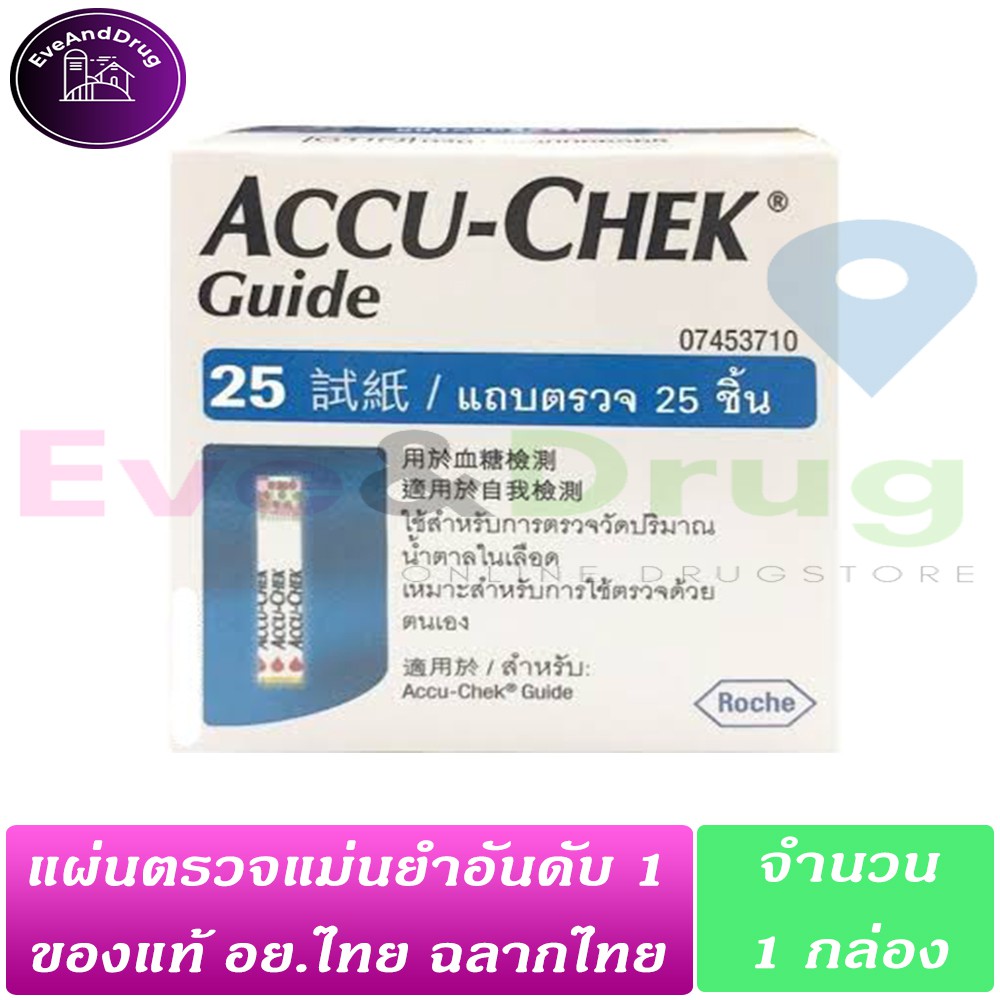 Accu-Chek Strip Guide 25 ชิ้น ( 1 กล่อง) ของแท้ อย.ไทย แผ่นตรวจวัดระดับน้ำตาลในเลือด Accuchek