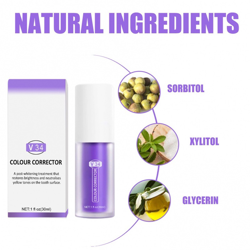 ( พร้อมส่งในไทย ) ยาสีฟันไวท์เทนนิ่ง V34 สีม่วง กําจัดคราบ ควันบุหรี่ ซ่อมแซมเหงือก และฟันขาว