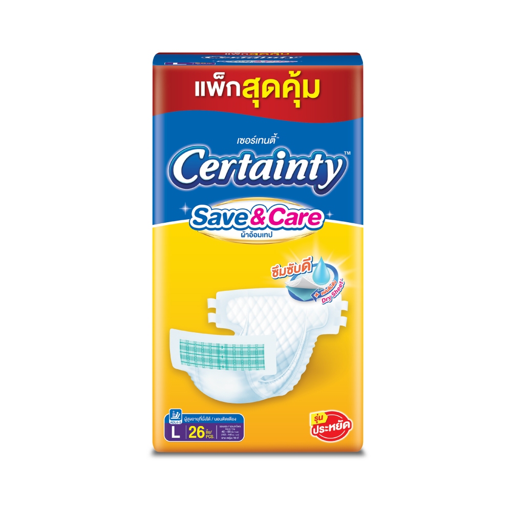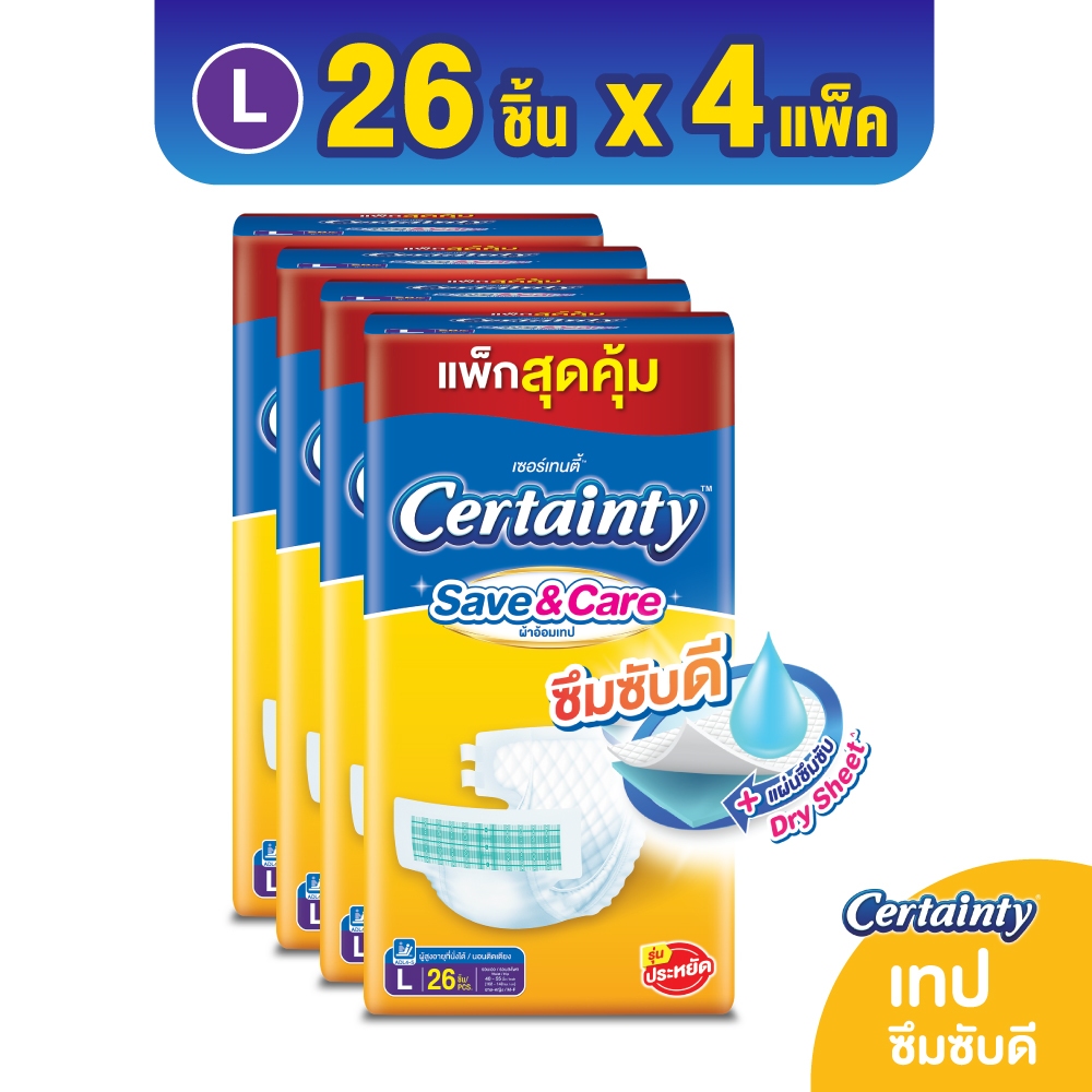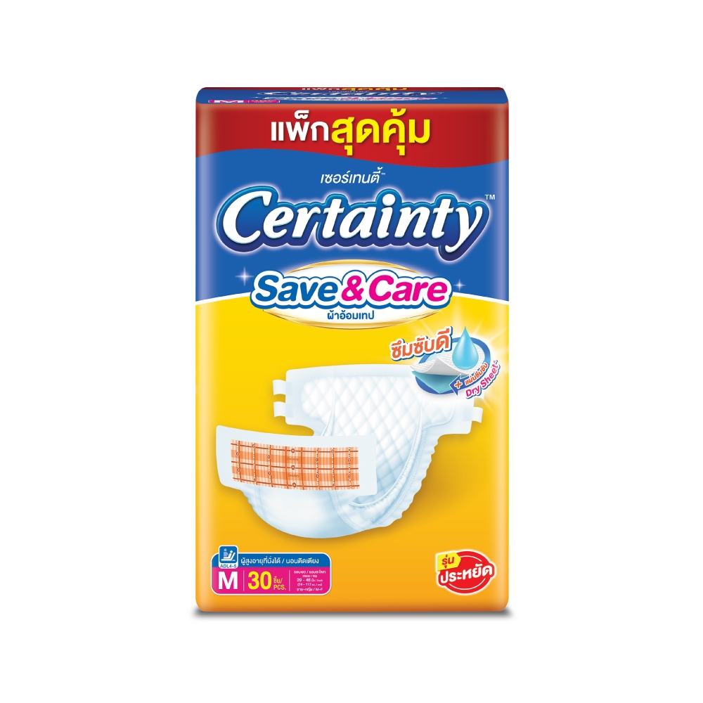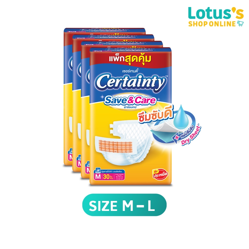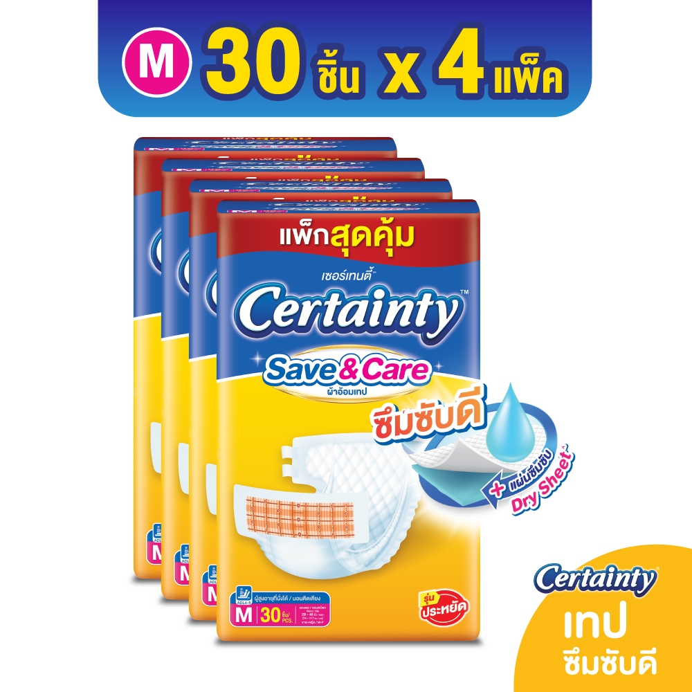 [ทั้งหมด 4 แพ็ค] เซอร์เทนตี้ ผ้าอ้อมผู้ใหญ่ เทป เซฟ แอนด์ แคร์ ไซส์ M-L CERTAINTY TAPE SAVE AND CARE SIZE M-L