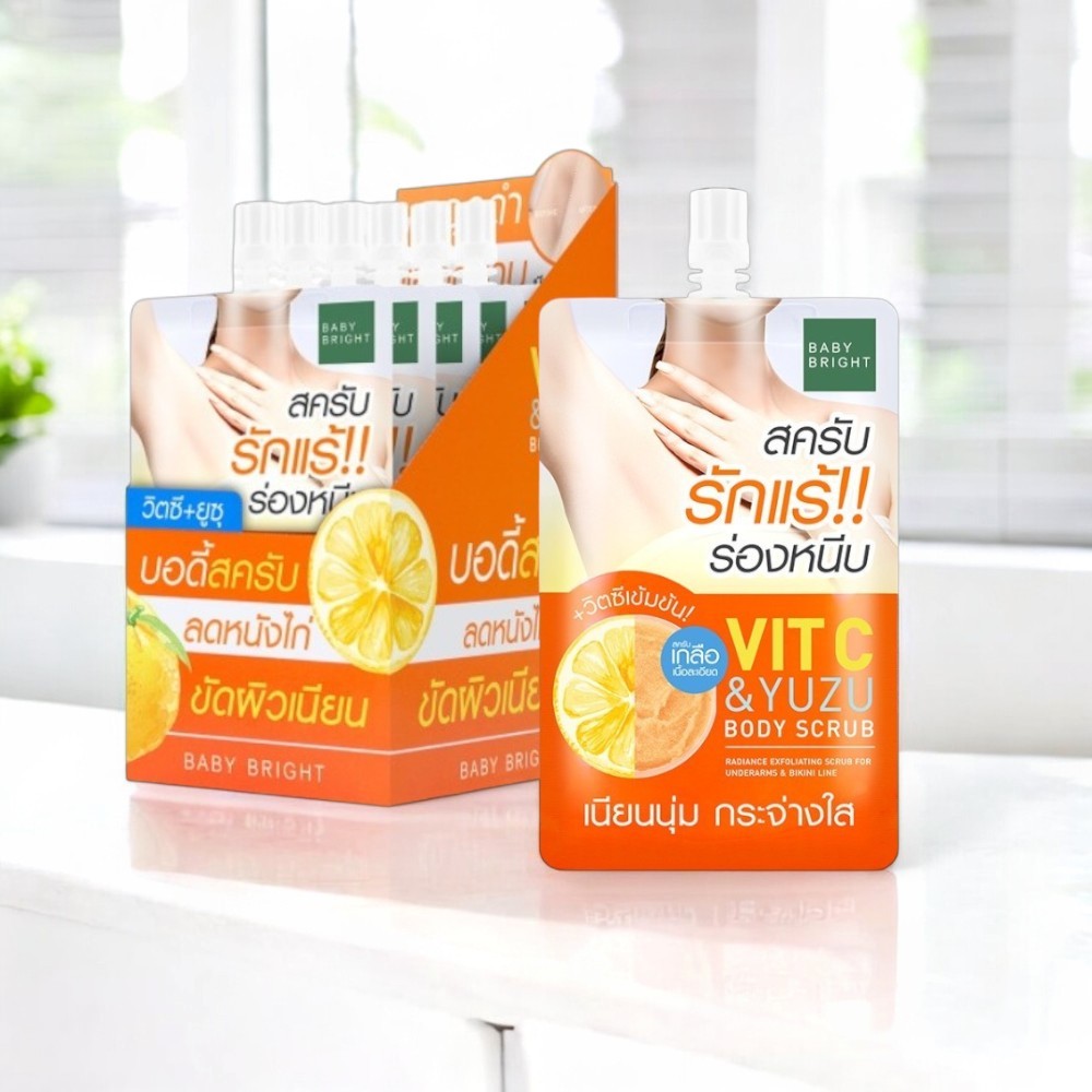 【กล่อง/6ชิ้น】สครับรักแร้ & ร่องหนีบ【วิตซี】Vit C & Yuzu Body Scrub 40g. Baby Bright