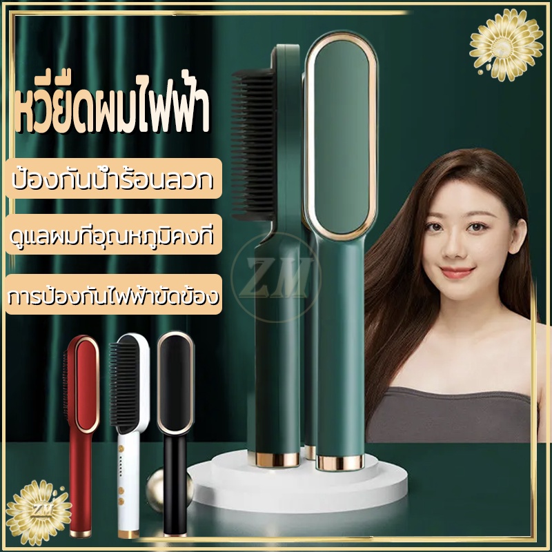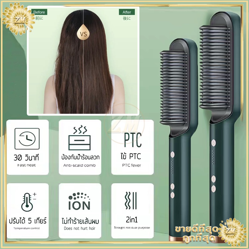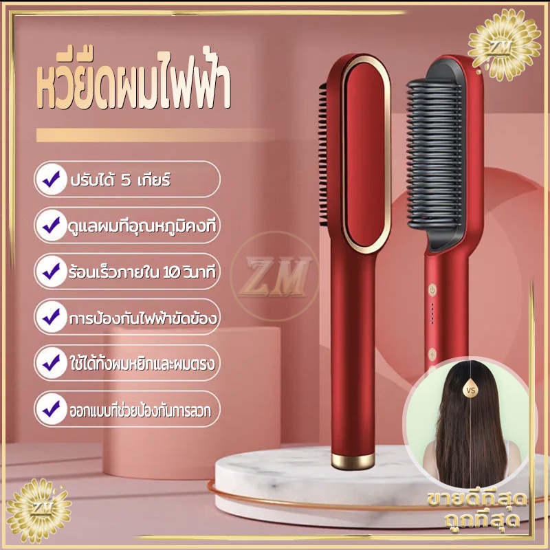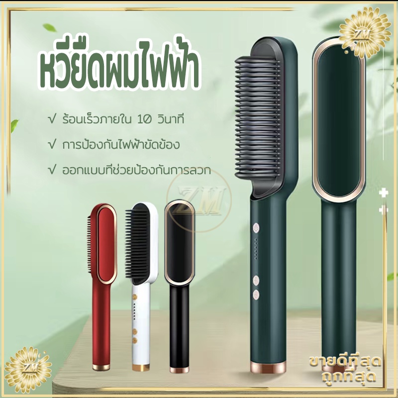 หวียืดผมไฟฟ้า ที่ม้วนผมไฟฟ้า หวีไฟฟ้า ยืดผม หวีผมตรง วัตถุประสงค์คู่ทั้งม้วนและตรง ร้อนเร็วภายใน 10 วินาที มีให้เลือก4สี