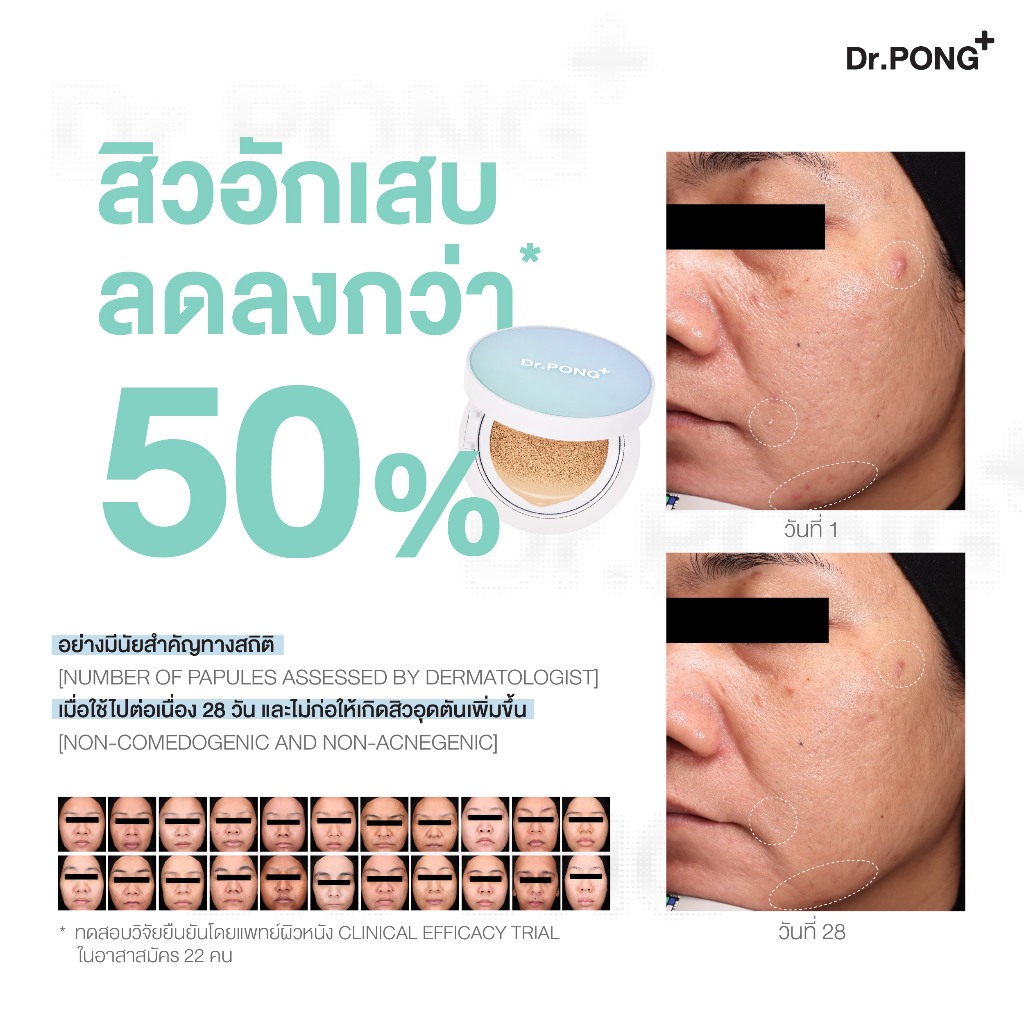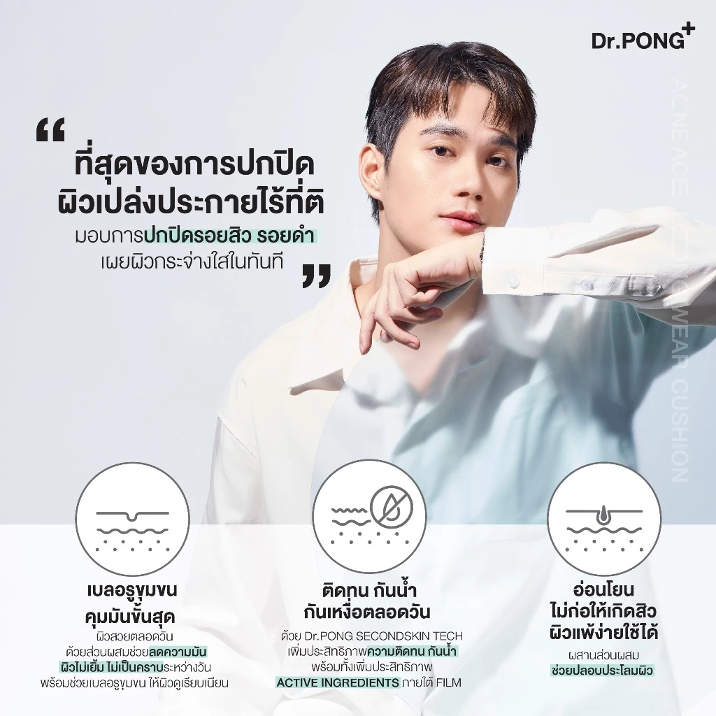 Dr.PONG ACNE ACE LONGWEAR CUSHION คุชชั่นลดสิว ยืนยันด้วยงานวิจัย ผิวไม่อุดตัน