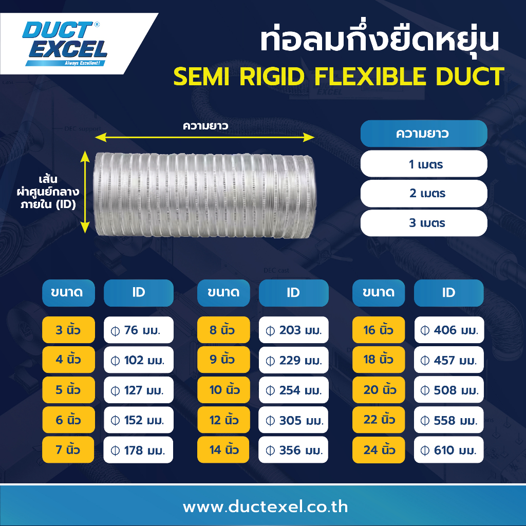 Duct Excel ท่อลมอลูมิเนียมแข็ง กึ่งยืดหยุ่น (Semi Rigid Flexible Duct) ขนาด 3, 4, 5, 6 นิ้ว