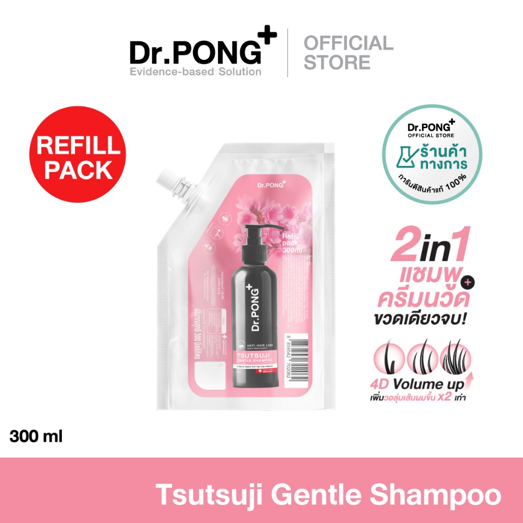 Refill pack 300 ml แชมพูลดผมร่วง Dr.PONG TSUTSUJI GENTLE SHAMPOO แชมพูลดผมร่วง เพิ่มวอลลุ่ม