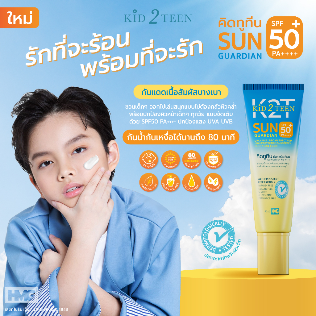 ครีมกันแดดเด็ก KID2TEEN SUN GUARDIAN SPF50 PA++++ FOR KIDS & TEEN สำหรับเด็กและวัยทีน