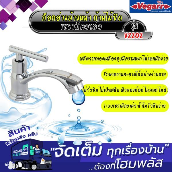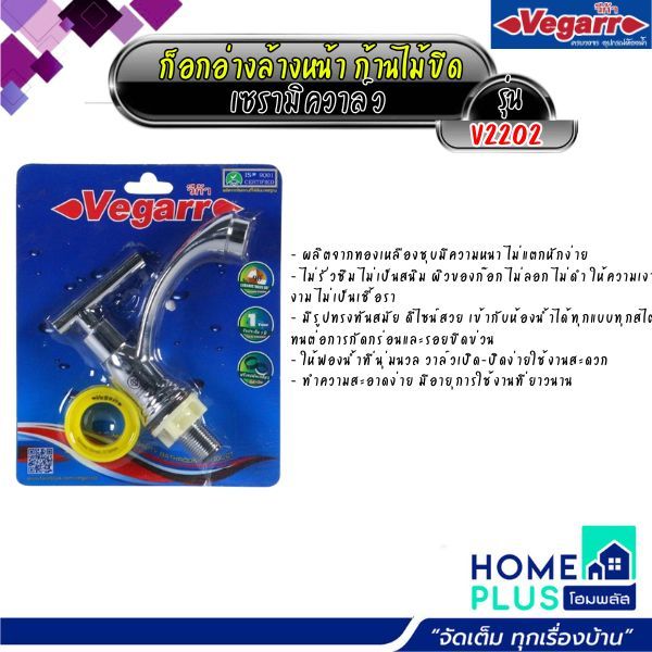 VEGARR ก็อกอ่างล้างหน้า ก้านไม้ขีด เซรามิควาล์ว V2202