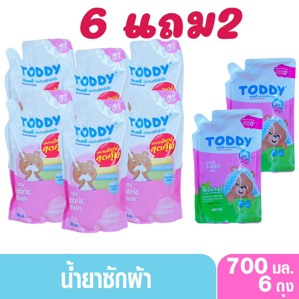 6 แถม2 ถุง Toddy ทอดดี้ น้ำยาซักผ้าเด็กทอดดี้ซอฟแคร์700มล.แถม600มล.