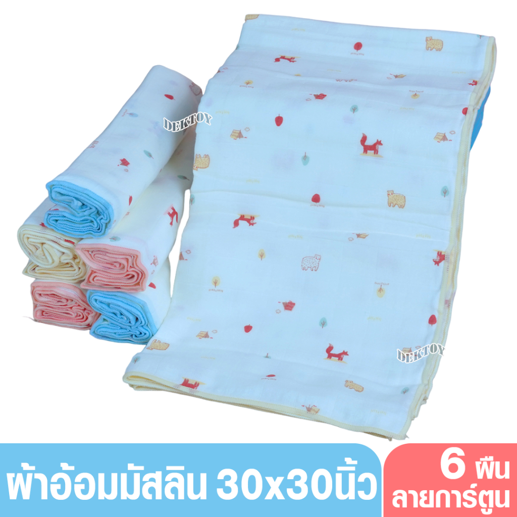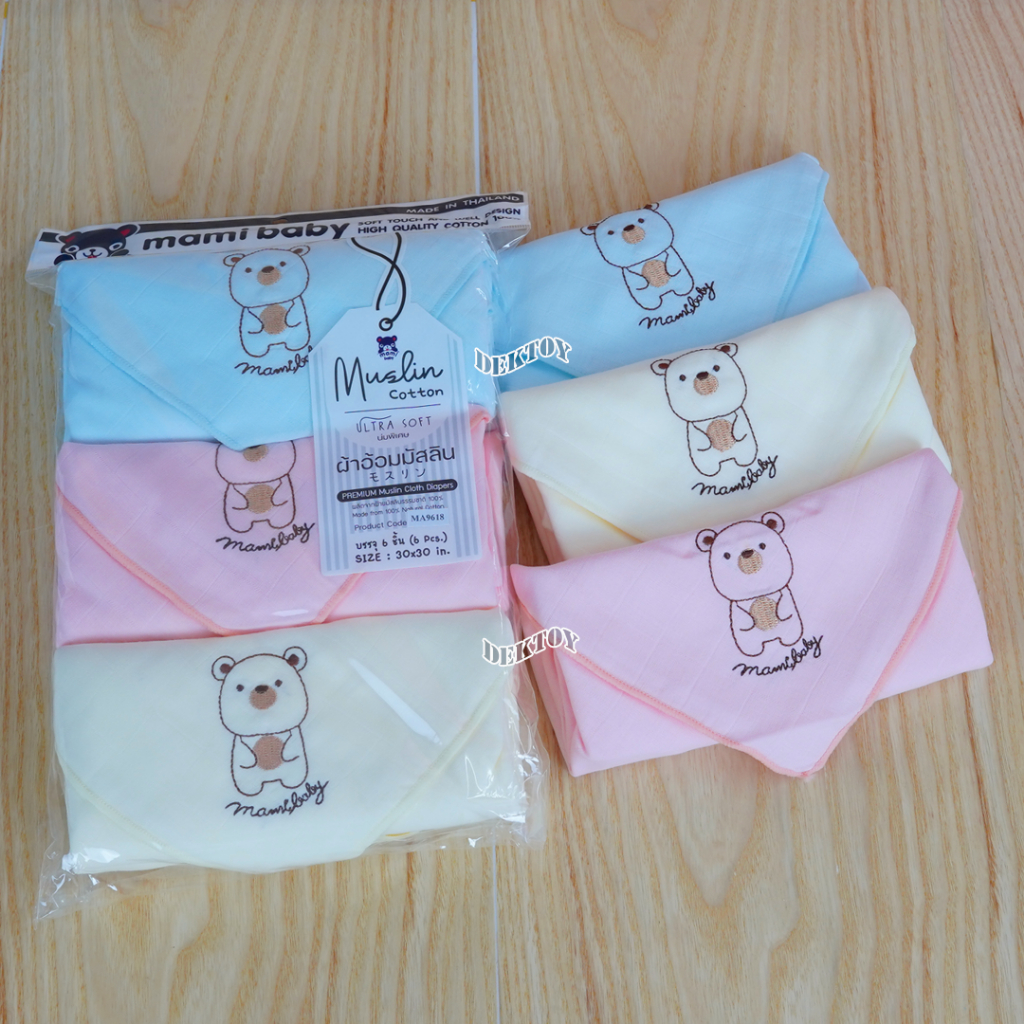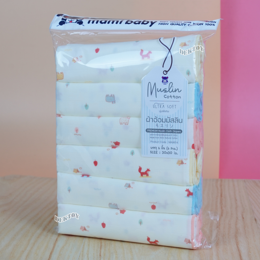 Mami ผ้าอ้อมเด็ก ผ้ามัสลิน Muslin 30x30นิ้ว แพ็ค 6 ผืน คละลาย