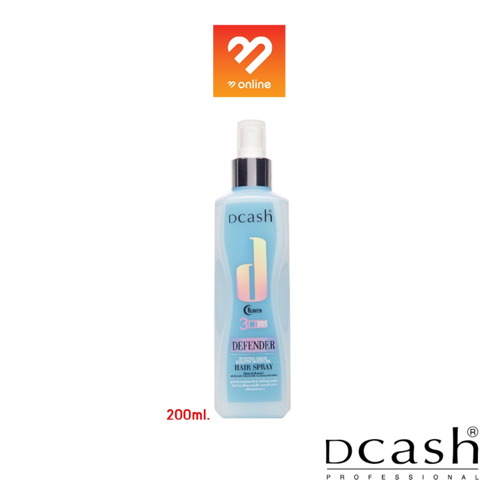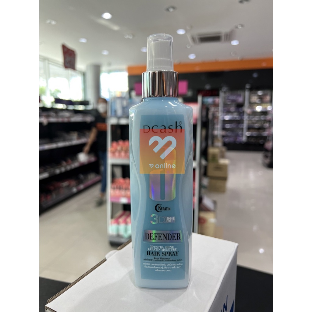 (ขวดสีฟ้า) Dcash Defender 3D Keratin Moisture Hair Spray ดีเฟนเดอร์ 3ดี เอ็กซ์ตร้า ชายน์ เคราติน มอยซ์เจอร์ แฮร์ 200 มล.