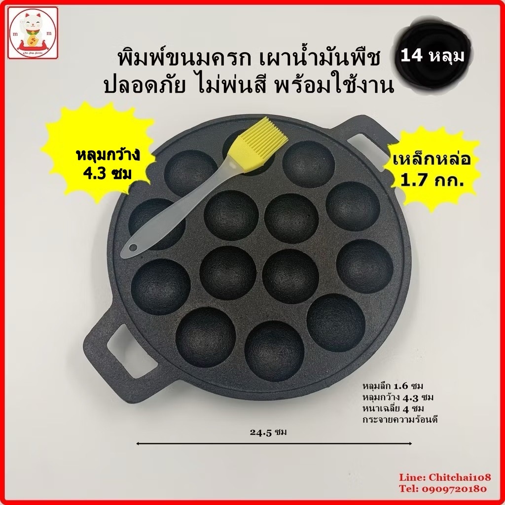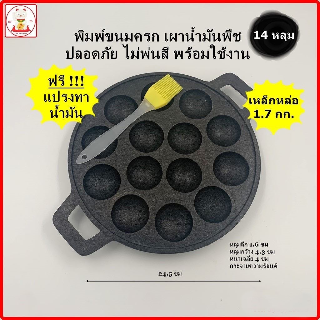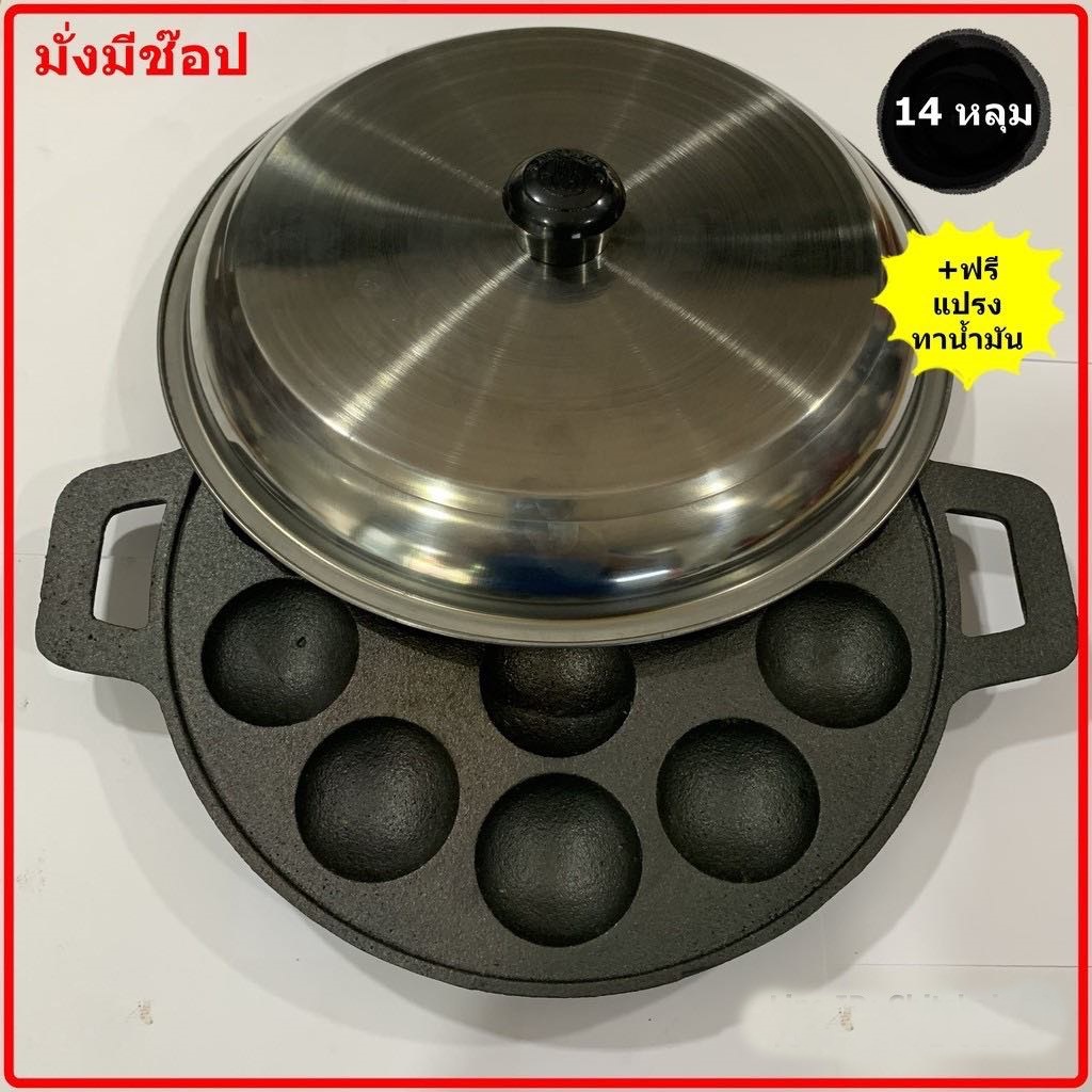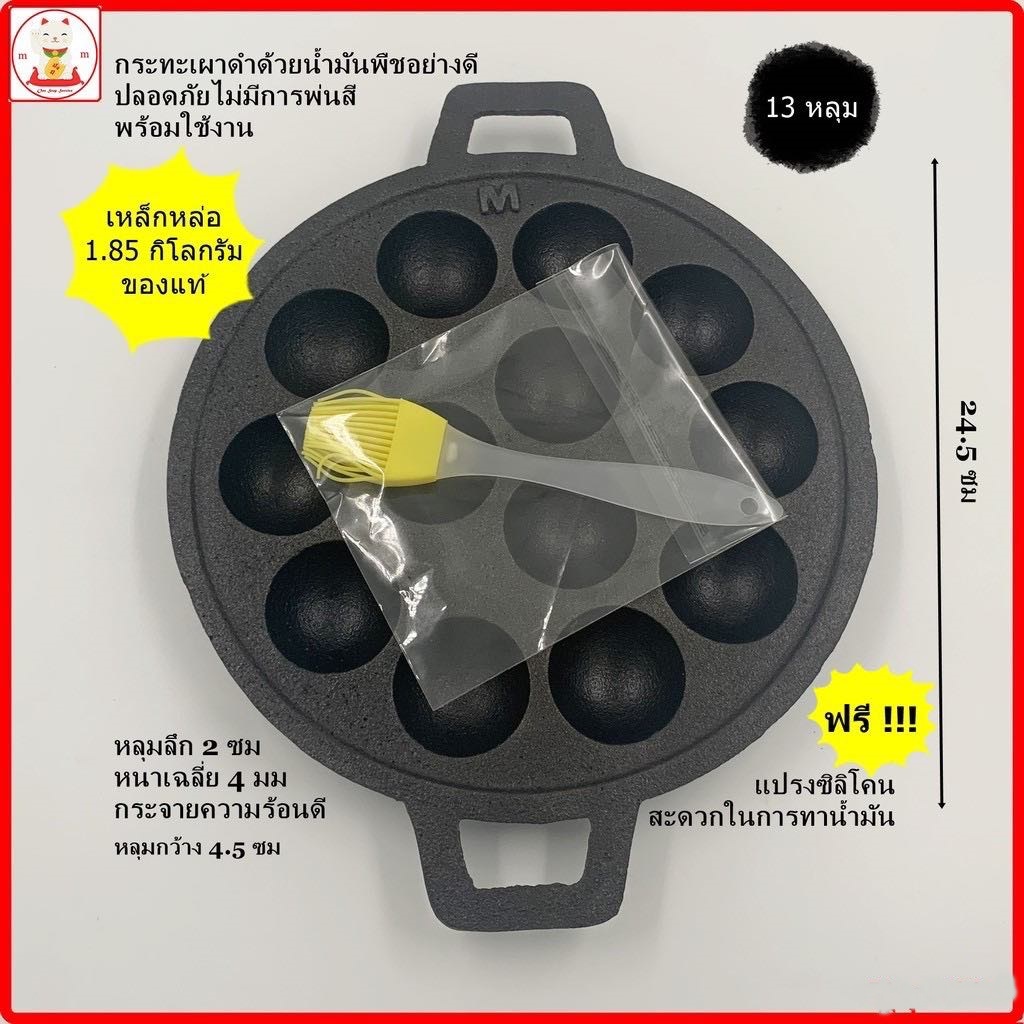 กระทะขนมครก 13-14 หลุม เผาผิวดำอย่างดี - ใช้ทำขนมครก ทอดไข่นกกระทา