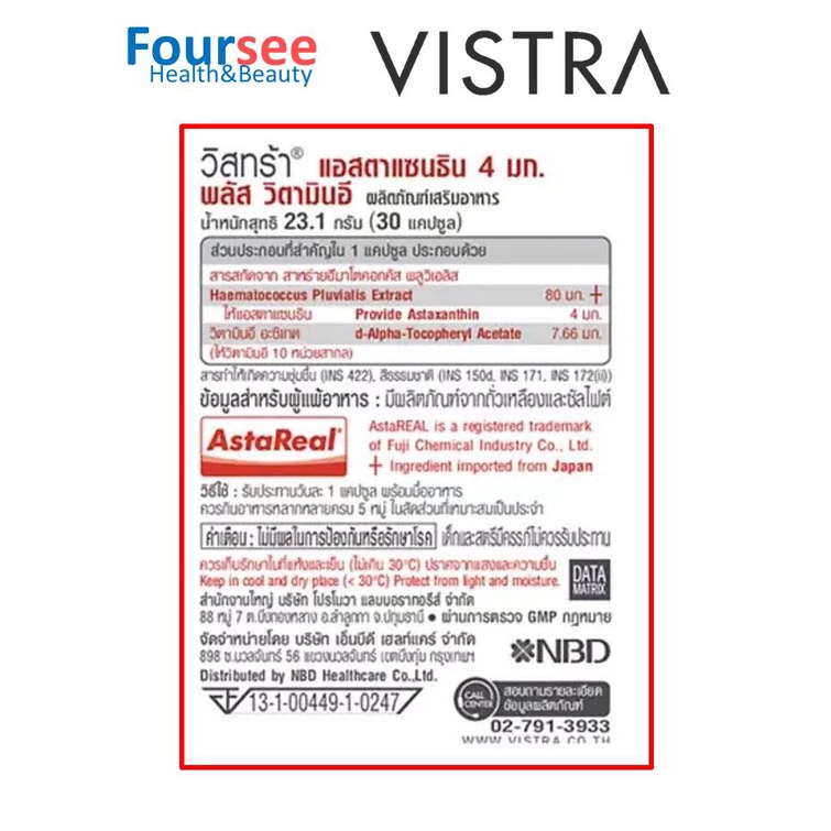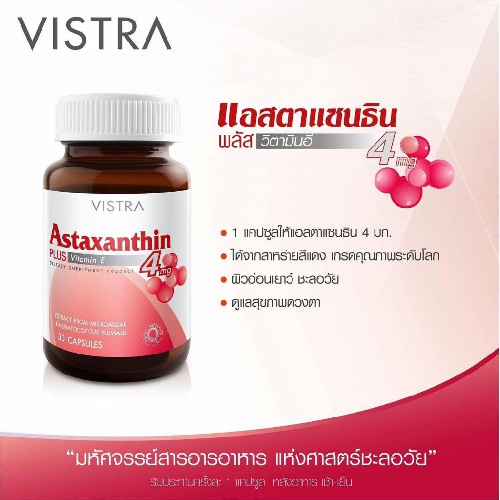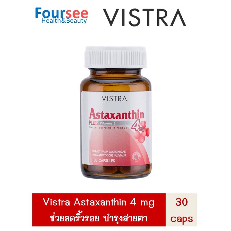 VISTRA astraxanthin 4 mg 30 แคปซูล วิสทร้า แอสตาแซนธิน พลัส วิตามินอี