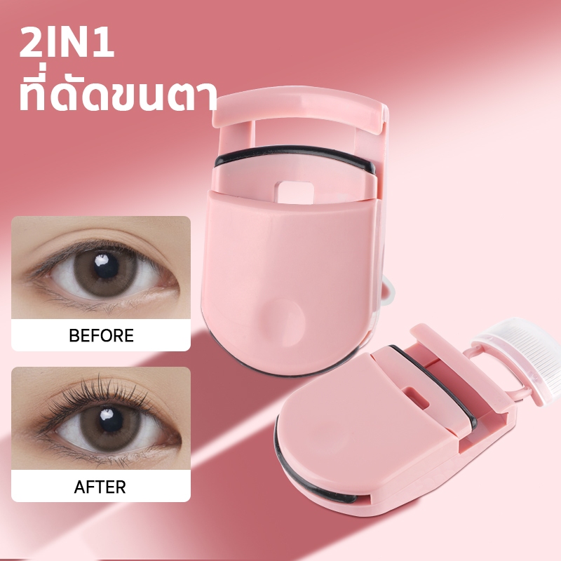 ที่ดัดขนตา 2IN1ที่ดัดขนตาพร้อมหวี แบบพกพา ติดทนนาน อุปกรณ์เสริมความงาม
