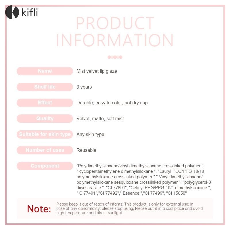 【kifli1 】Velvet Matte Lip Glaze Non-fading Lip Cheek Dual Purpose Lip Glaze-KI