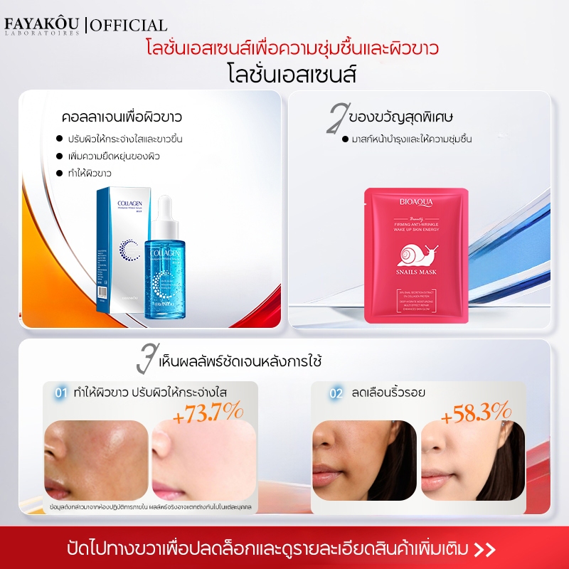 FAYANKOU เซรั่มคอลลาเจนเพื่อความชุ่มชื้นและผิวขาว 40 มล. ลดเลือนริ้วรอย ให้ความชุ่มชื้น กระชับผิว