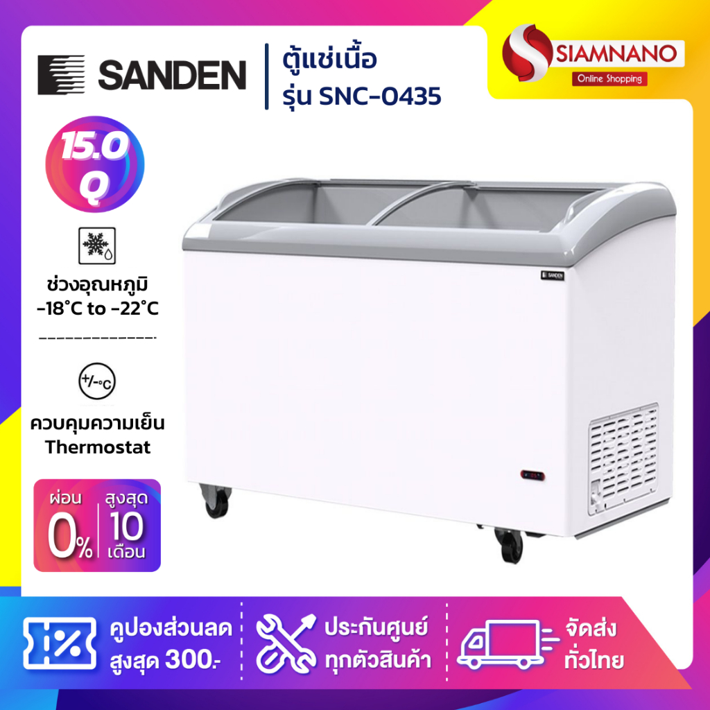 ตู้แช่แข็งกระจกฝาโค้ง Sanden รุ่น SNC-0435 ขนาด 15 Q ( รับประกันนาน 5 ปี )