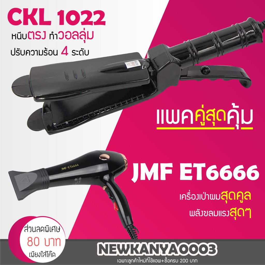 LIC 🔥 แพ็คคู่สุดคุ้ม 🔥เครื่องหนีบผม CKL / JMF 1022 ที่หนีบผม หนีบตรง หนีบเงา+ไดร์เป่าผม เครื่องเป่าผม ที่เป่าผม JMF 6666