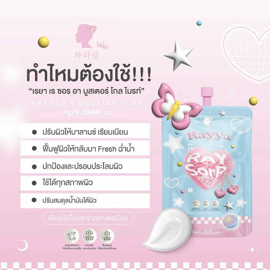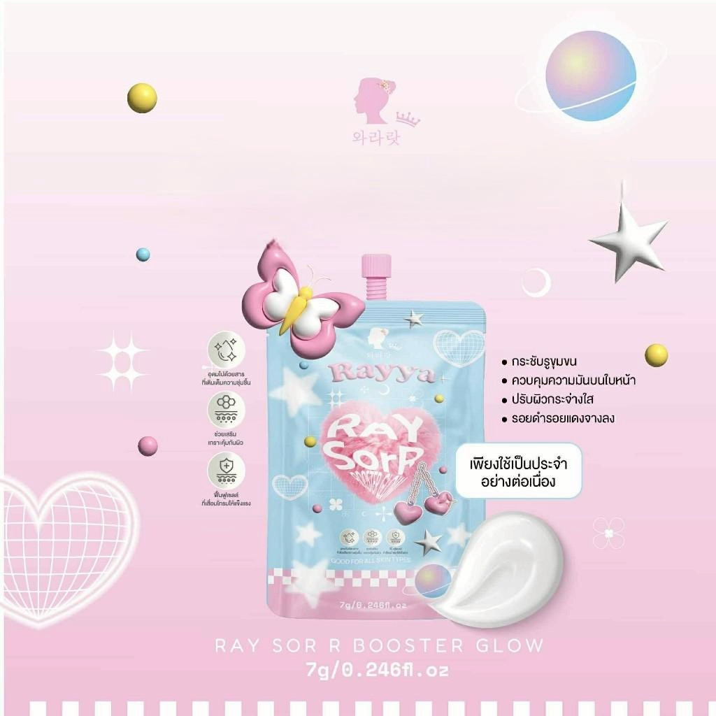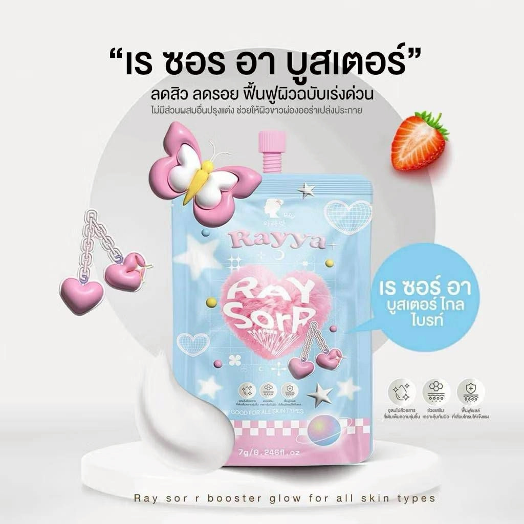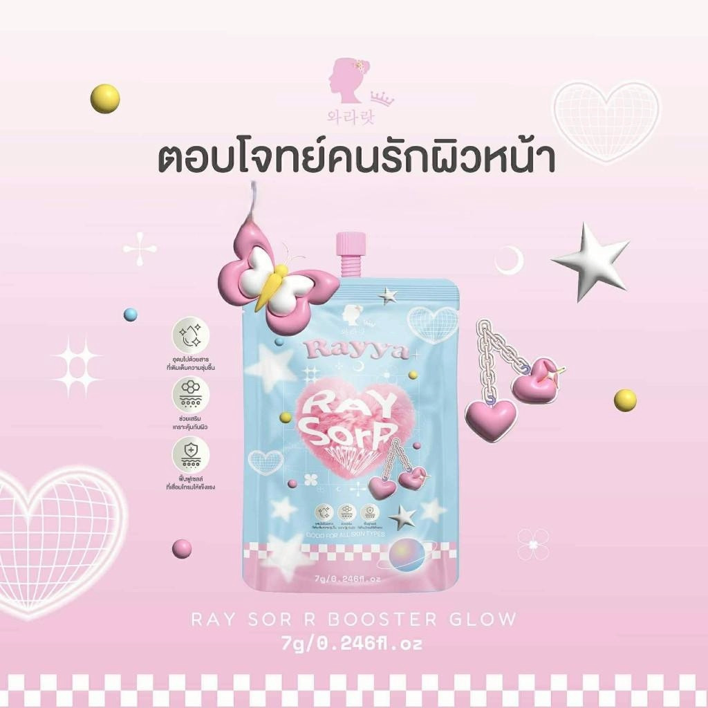 **ซอง** Ray Sor R booster glow bright rayya เซรั่มเรซออาร์ บาย เรยา หน้าใส ลดสิว ฝ้า กระ จุดด่างดำ หน้าเด็ก ปริมาณ 7 ml.