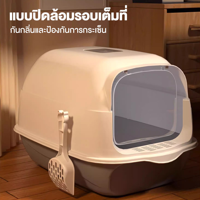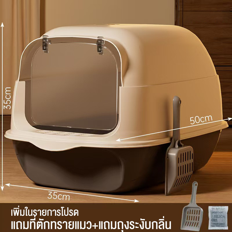 กระบะทรายแมว ถาดทรายแมว ห้องน้ำแมว ฟรีช้อนทรายและถุงดับกลิ่น (พร้อมส่ง) CW31
