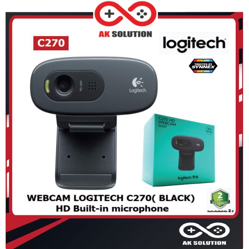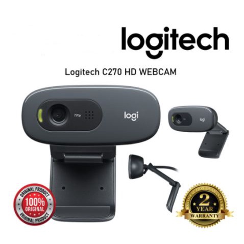 Logitech C270 Webcam กล้องเว็บแคมสำหรับวิดีโอคอล HD 720p/30fps ปรับแสงได้อัตโนมัติ ไมค์ตัดเสียงรบกวนในตัว