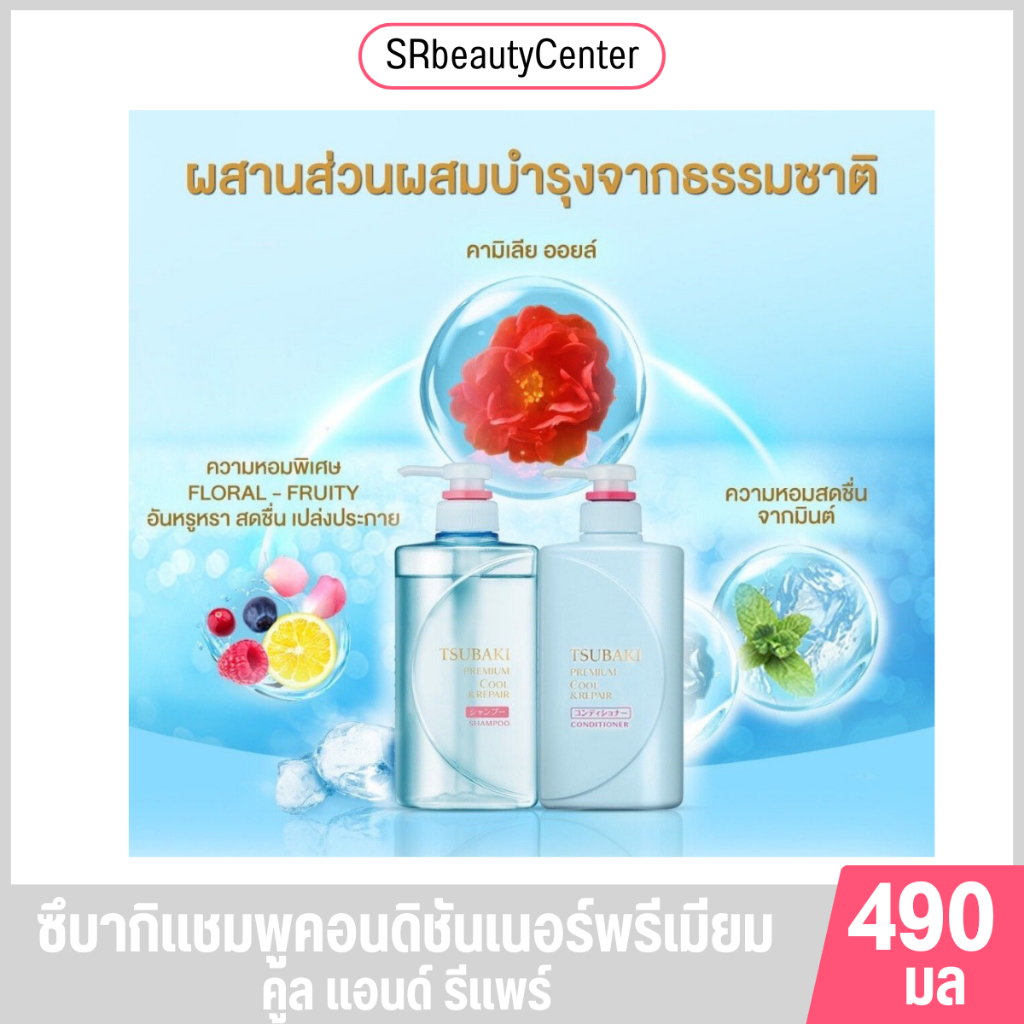ซึบากิ แชมพูพรีเมียม คูล แอนด์ รีแพร์ (สำหรับผมลีบและมัน) 490มล.