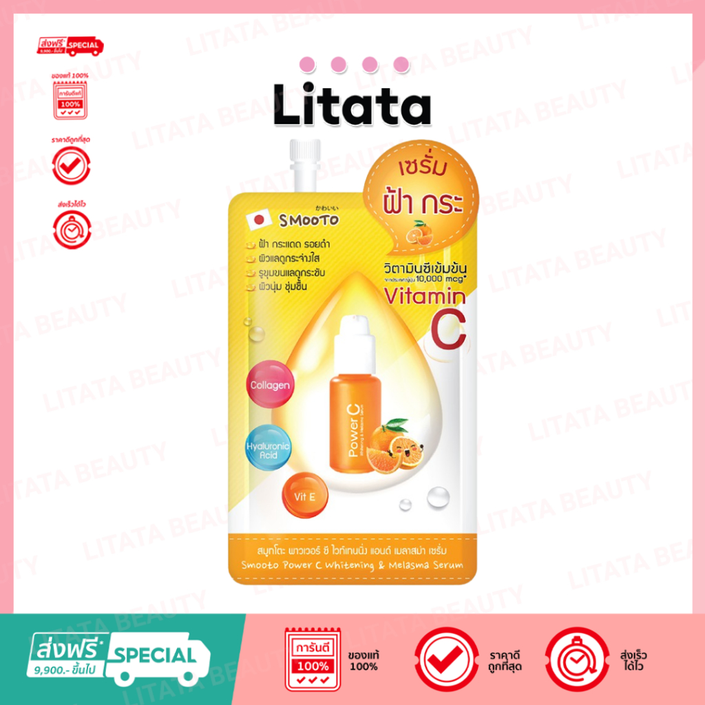 [ซอง] สมูทโตะ พาวเวอร์ซี ไวท์เทนนิ่ง แอนด์ เซรั่ม Smooto PowerC Whitening & Melasma Serum 8กรัม