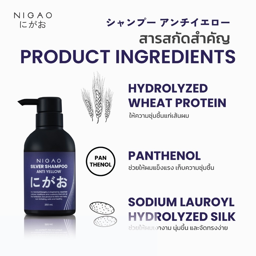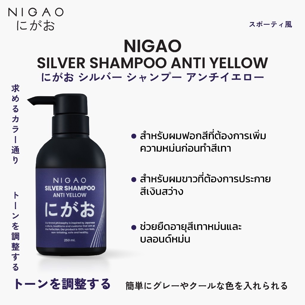 [ใหม่] นิกาโอะ แชมพูม่วง (ซิลเวอร์ แชมพู แอนตี้ เยลโล่) สำหรับหักล้างไรเหลือง 250 มล.