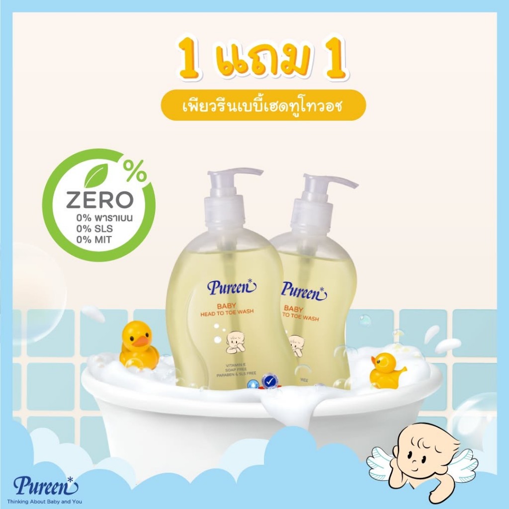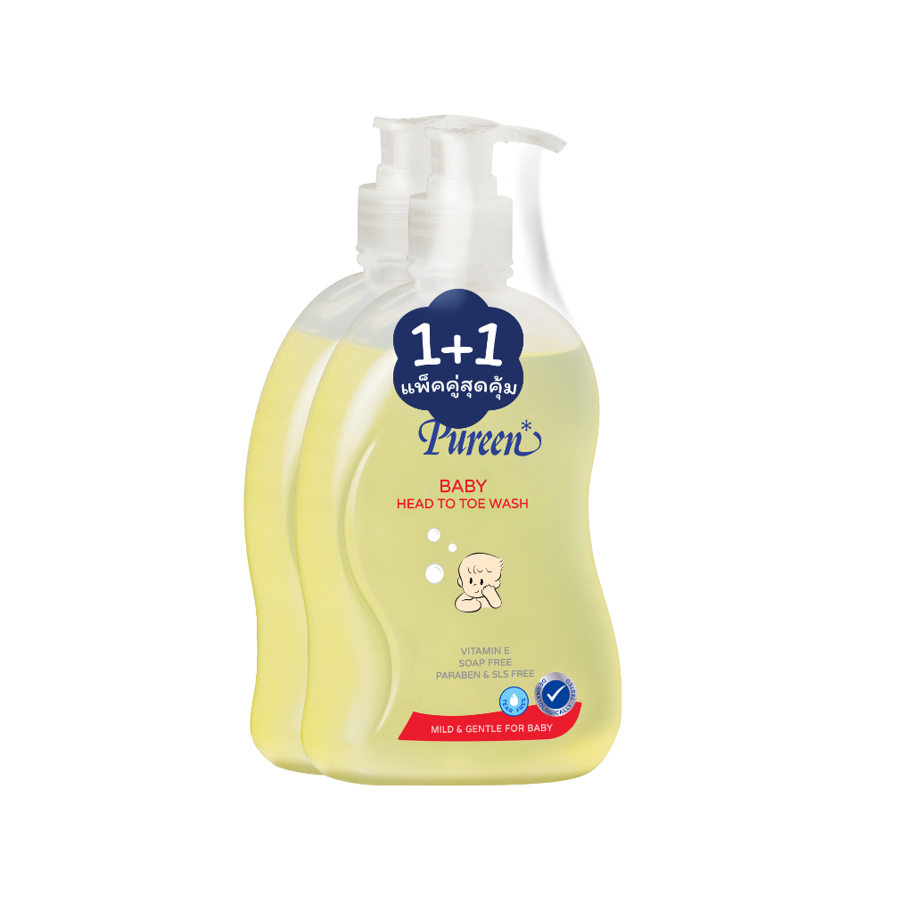 [1 แถม 1] Pureen เพียวรีนเบบี้เฮดทูโทวอช 500 มล. ใช้ได้ทั้งอาบน้ำและสระผม ช่วยบำรุงผิวและเส้นผมในขวดเดียว