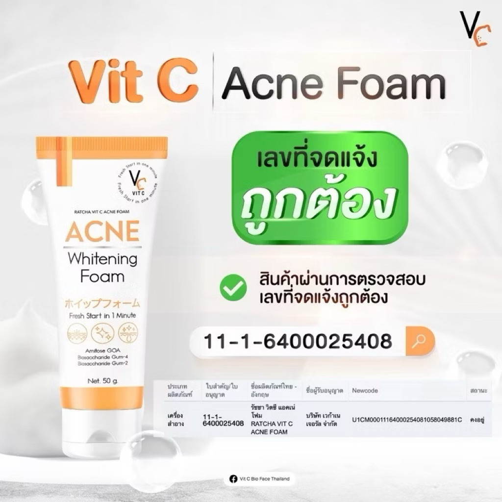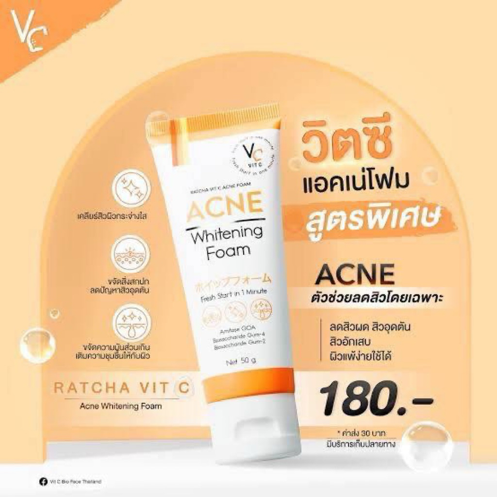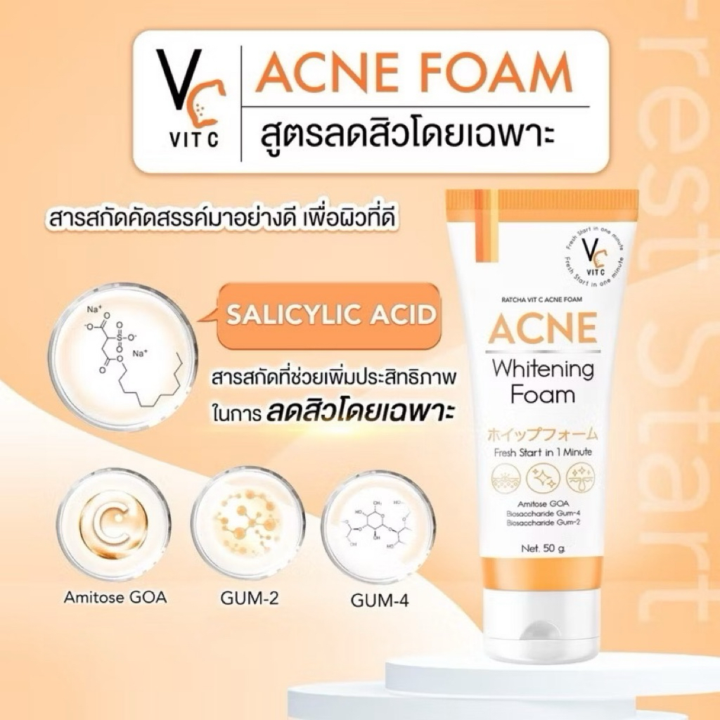โฟมล้างหน้า VC น้องฉัตร RATCHA VIT C ACNE FOAM รัชชา วิตซี แอคเน่ โฟม 50g