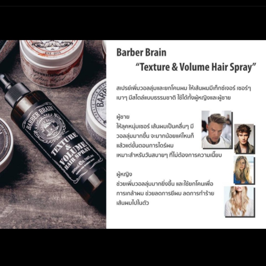 สเปรย์ฉีดยกโคนผม บาร์เบอร์ เบรน เท็กซ์เจอร์ วอลลุ่ม แฮร์ สเปรย์ Barber Brain Texture & Volume Hair Spray 200 ml.