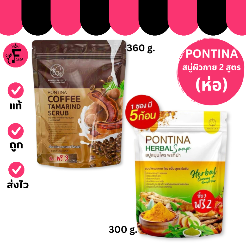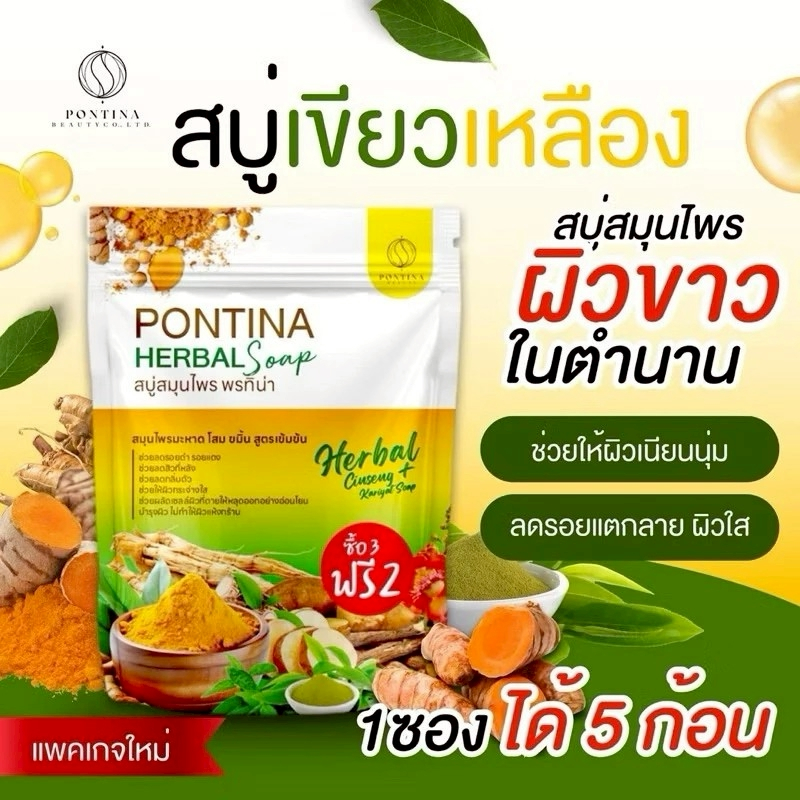 (1 ซอง) Pontina Herbal Soap – สบู่สมุนไพร พรทิน่า 2 สูตร (300 g./360 g.)