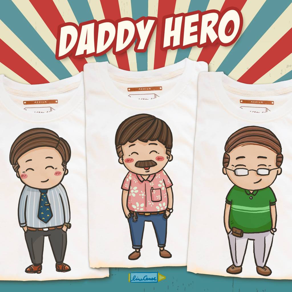 "Daddy Hero 👴🏻❤️" เสื้อลายคุณพ่อของฉัน💕 เสื้อยืดสีขาวออฟไวท์ เสื้อคู่ เสื้อครอบครัว