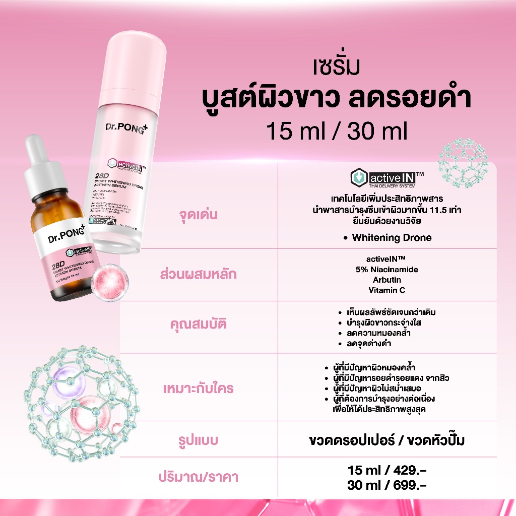 เซรั่มสูตรใหม่! Gen2 Dr.PONG 28D smart whitening drone activein serum เซรั่มบำรุงผิวขาวกระจ่างใส
