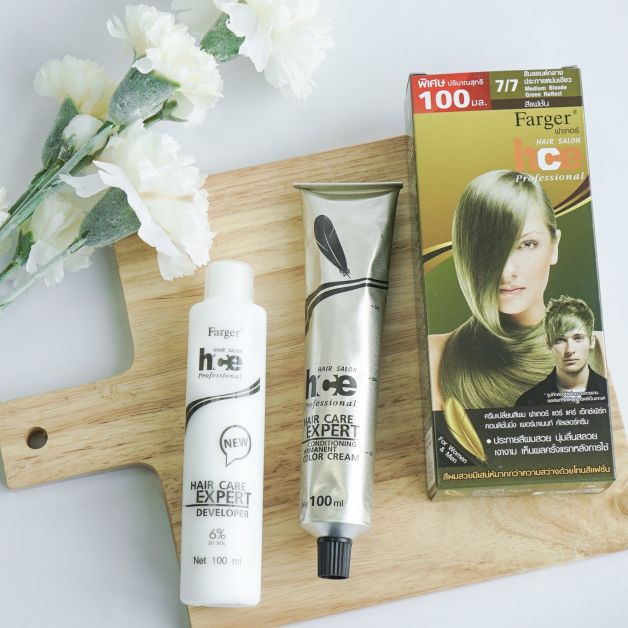 🌟 ครีมเปลี่ยนสีผม 7/7 สีบลอนด์กลางประกายหม่นเขียว ฟาเกอร์ FARGER HAIR CARE EXPERT PERMANENT COLOR CREAM