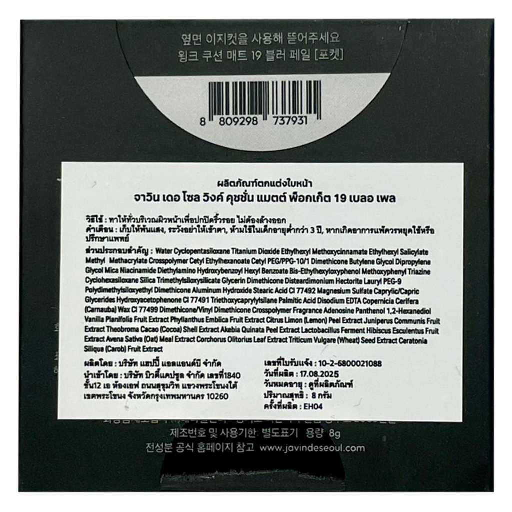 JAVIN DE SEOUL - Wink Cushion Matte Pocket (8g.) จาวิน เดอ โซล วิงค์ คุชชั่น แมตต์ พ็อกเก็ต